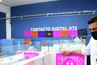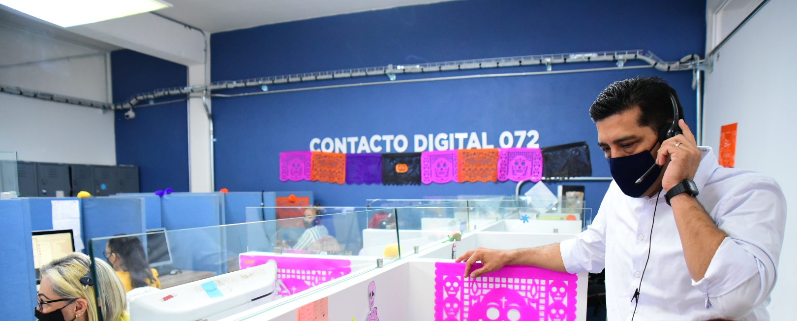 Además durante su visita, atendió personalmente la línea de atención ciudadana 072 y los reportes recibidos en el Centro de Contacto Digital, mismo que está disponible las 24 horas, los 365 días del año.