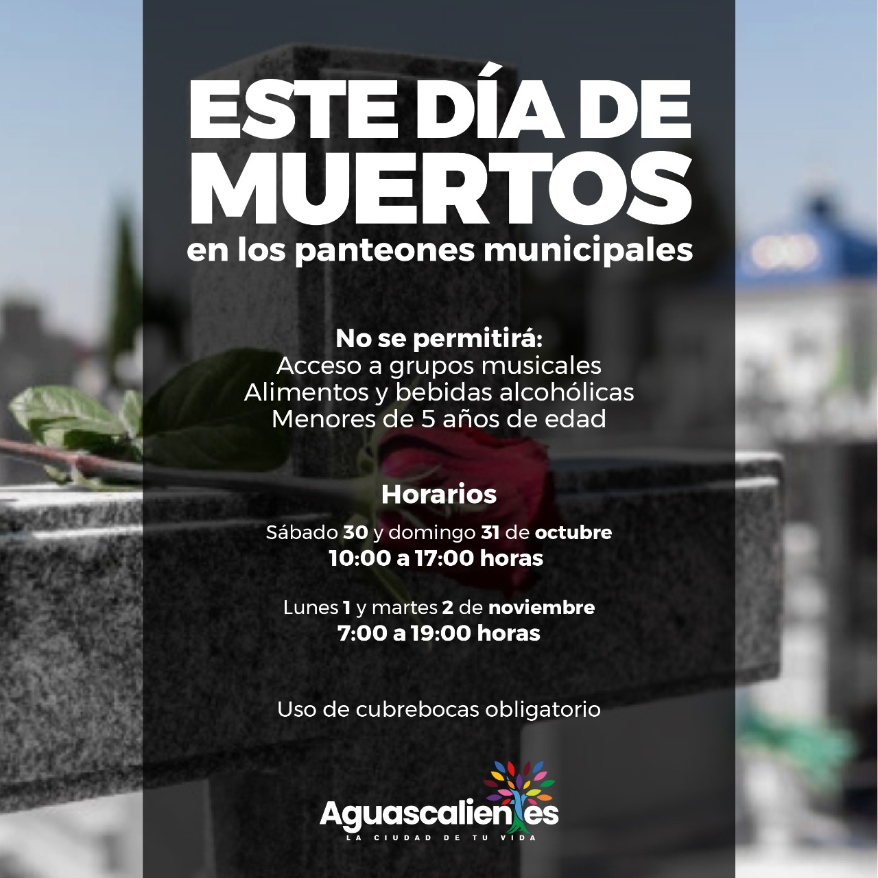 Es importante mencionar que no se permitirá el acceso a grupos musicales, alimentos y bebidas alcohólicas; no acudir con menores de 5 años de edad; para evitar aglomeraciones se recomienda también realizar las visitas días antes o después, ya que los cementerios permanecerán abiertos.