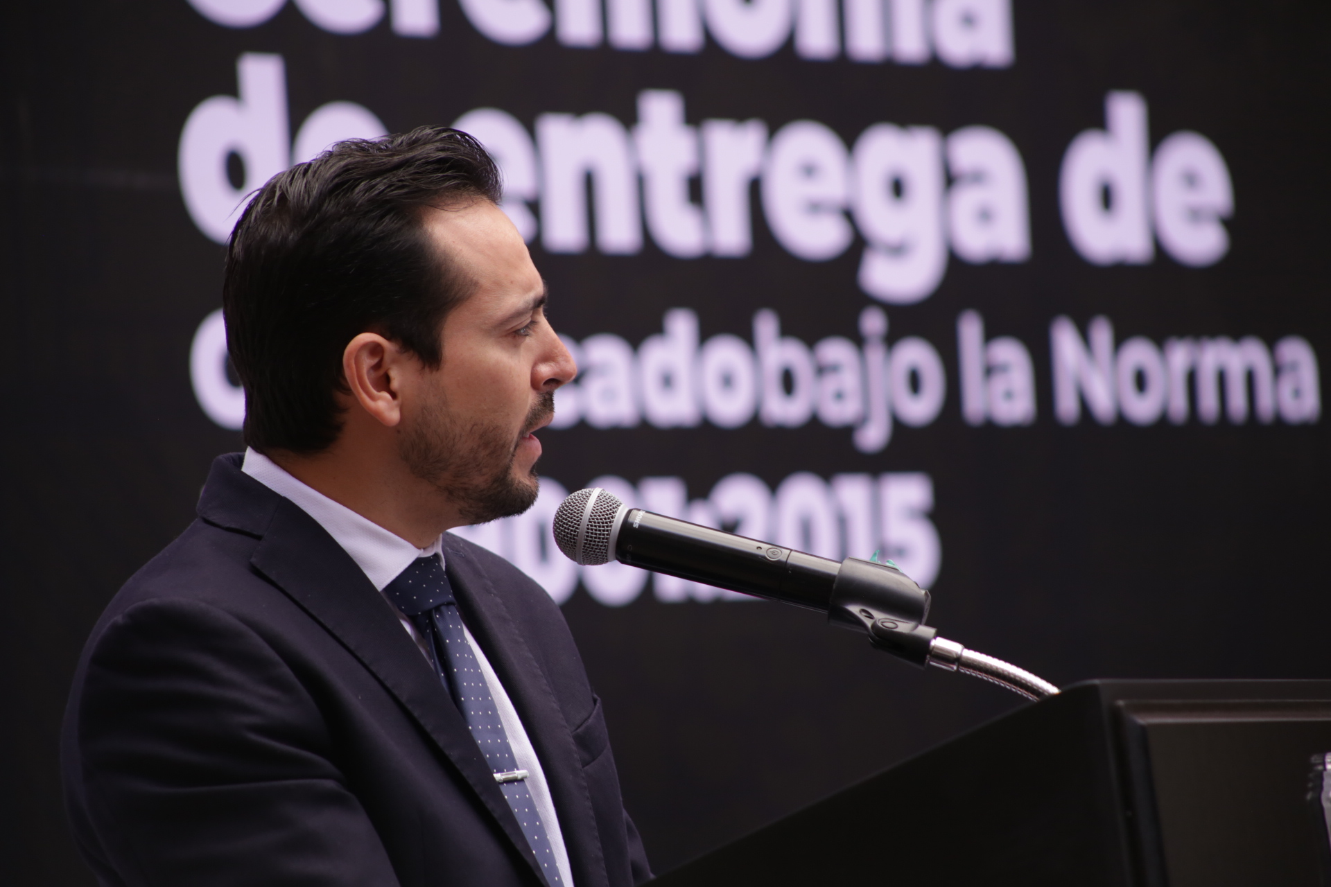 Luis Eduardo Romero Rodríguez, director general de la certificadora Inter Americas Standars Services reconoció la labor que realizan los servidores públicos en el Ayuntamiento capitalino y mencionó que el certificado que se expide tiene validez en más de 150 países.