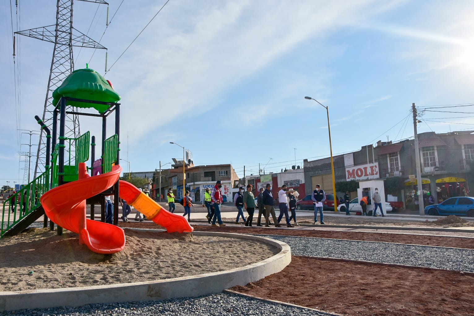 - Vecinos del oriente de la ciudad contarán con trotapista, cancha de usos múltiples, banquetas perimetrales, áreas de descanso, jardineras, juegos infantiles y aparatos de gimnasio
