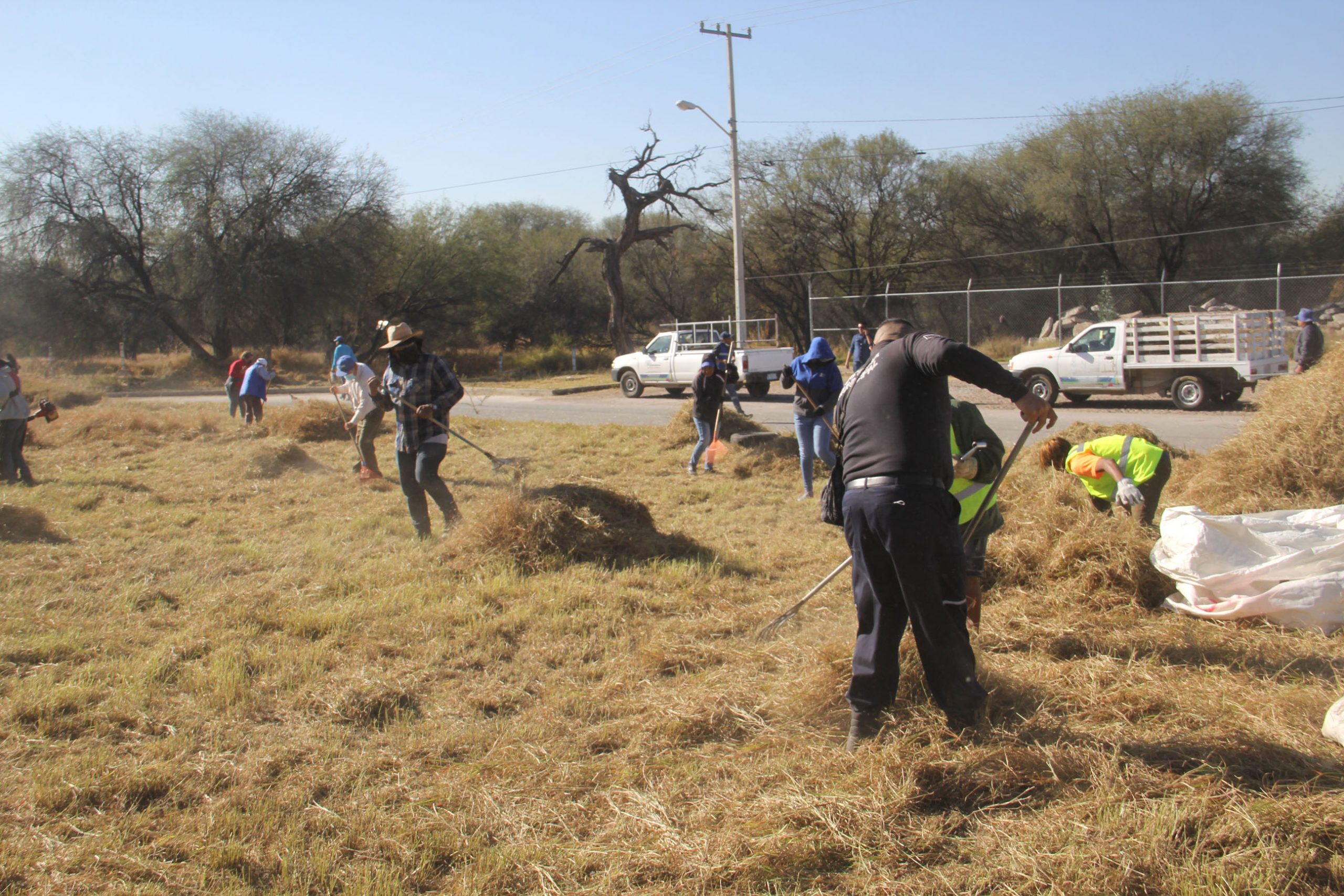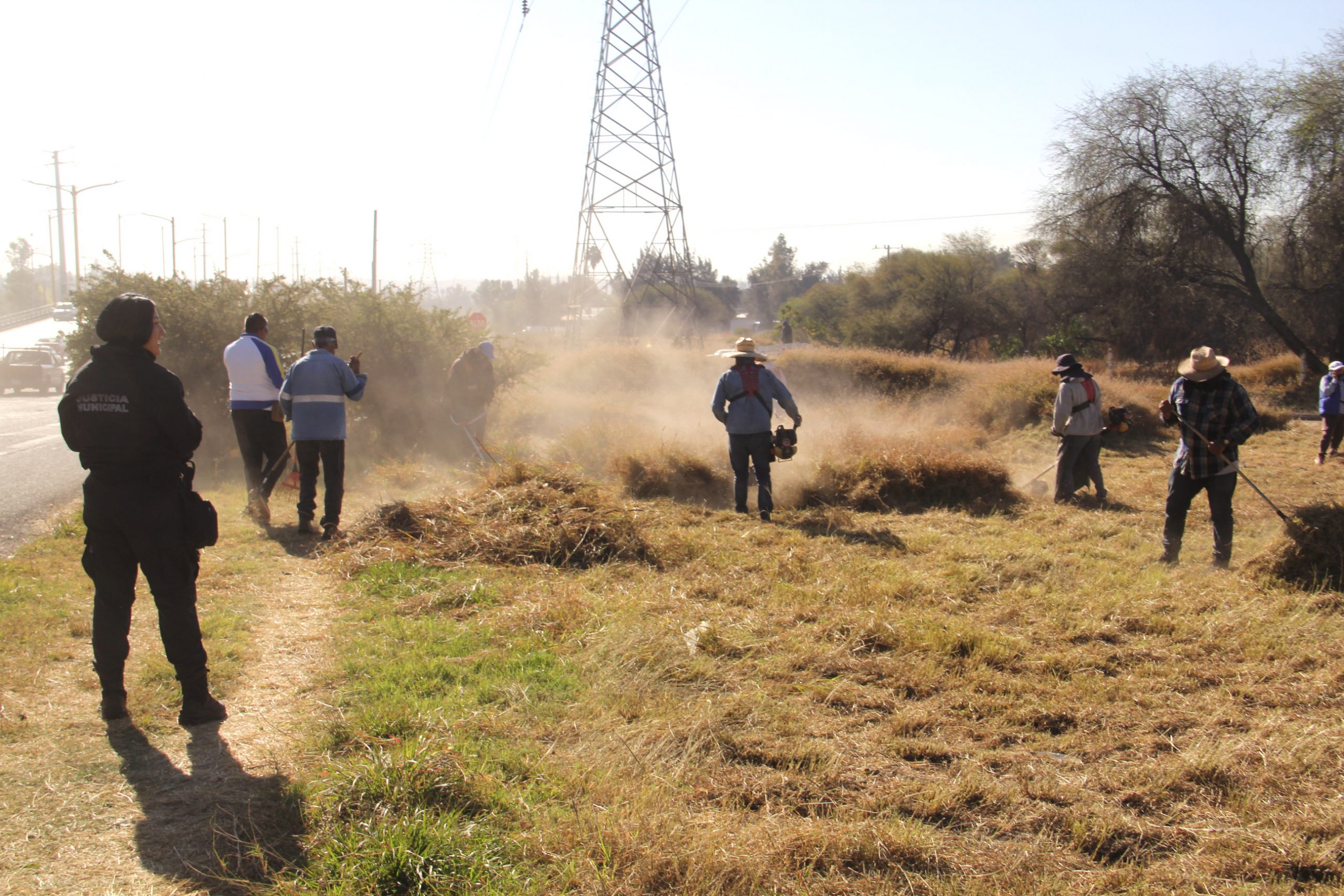 De esta manera distintas dependencias como Servicios Públicos, Obras Públicas, Medio Ambiente y Desarrollo Sustentable, Coordinación de Delegaciones Urbanas y Rurales, y a través de la Dirección de Justicia Cívica un grupo de jóvenes que permutan infracciones por servicio comunitario, se unieron para además retirar alrededor de 35 toneladas de maleza y a su vez crear la franja de contención de fuego en los límites de dicha mezquitera.