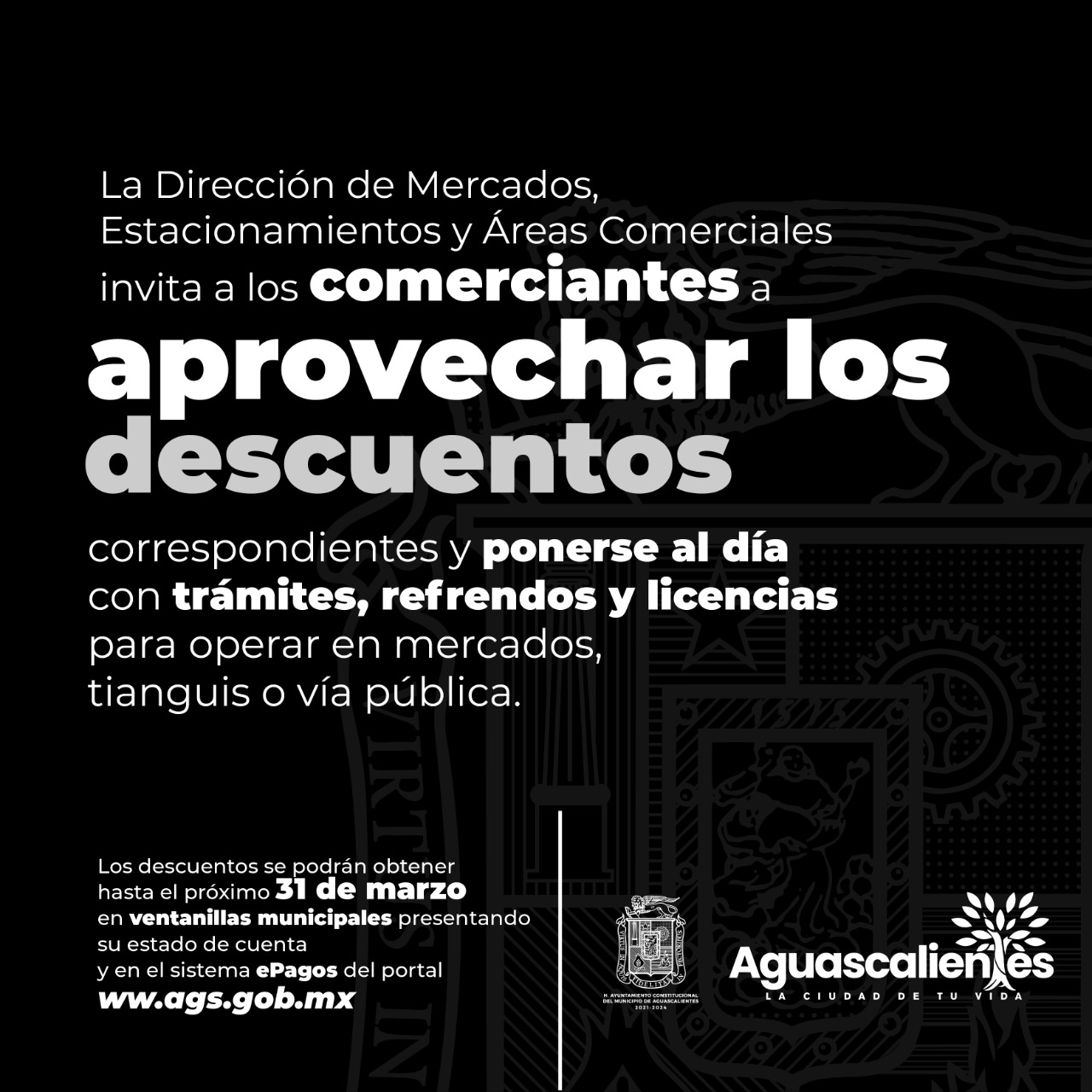 MUNICIPIO DE AGUASCALIENTES INVITA A PONERSE AL DÍA EN TRÁMITES Y LICENCIAS DE MERCADOS Y ÁREAS COMERCIALES