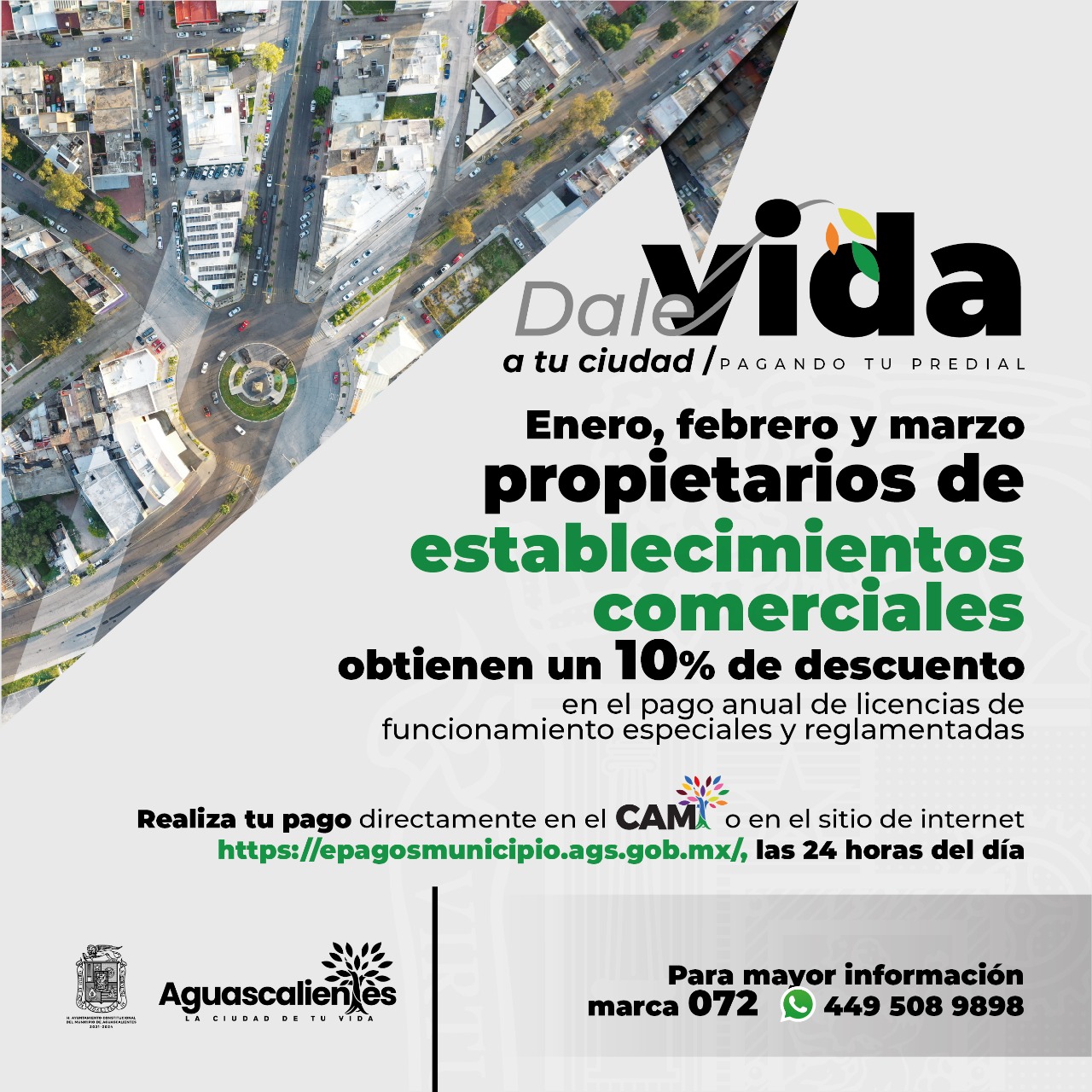 El Municipio de Aguascalientes informa que durante el primer trimestre del 2022, propietarios de establecimientos pueden obtener un 10 por ciento de descuento en el pago anual de licencias de funcionamiento especiales y reglamentadas.