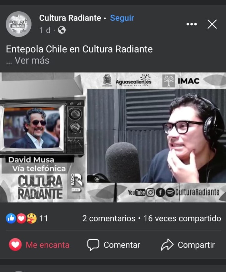 Cultura Radiante, un espacio radiofónico de difusión para creadores y gestores culturales se transmite los jueves a las 17:30 horas. Se puede sintonizar también a través de Radio Universidad en el 94.5 de FM.