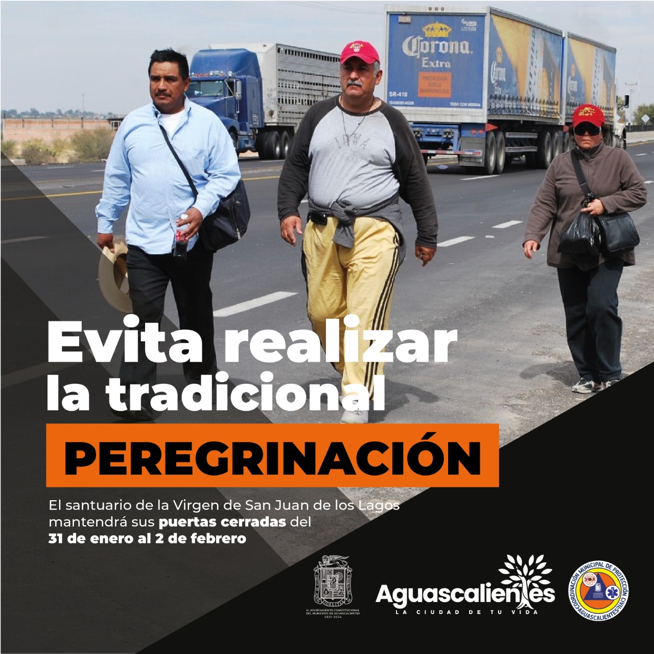 La Coordinación Municipal de Protección Civil de Aguascalientes, debido a la emergencia sanitaria, exhorta a la población a no realizar peregrinaciones a la Basílica de San Juan de los Lagos, además de que autoridades eclesiásticas y de salud del estado de Jalisco determinaron cancelar la festividad religiosa de La Candelaria para evitar la propagación de Covid-19.