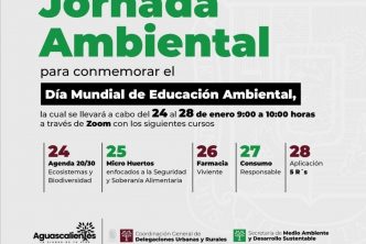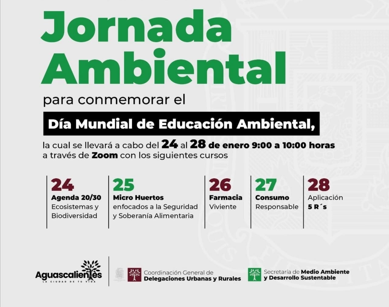 Con motivo del Día Mundial de la Educación Ambiental a celebrarse el 26 de enero, el Municipio de Aguascalientes a través de la Secretaría de Medio Ambiente y Desarrollo Sustentable (SEMADESU) y la Coordinación General de Delegaciones Urbanas y Rurales pone en marcha una jornada para impartir conocimientos teóricos y prácticos a favor del cuidado ambiental.