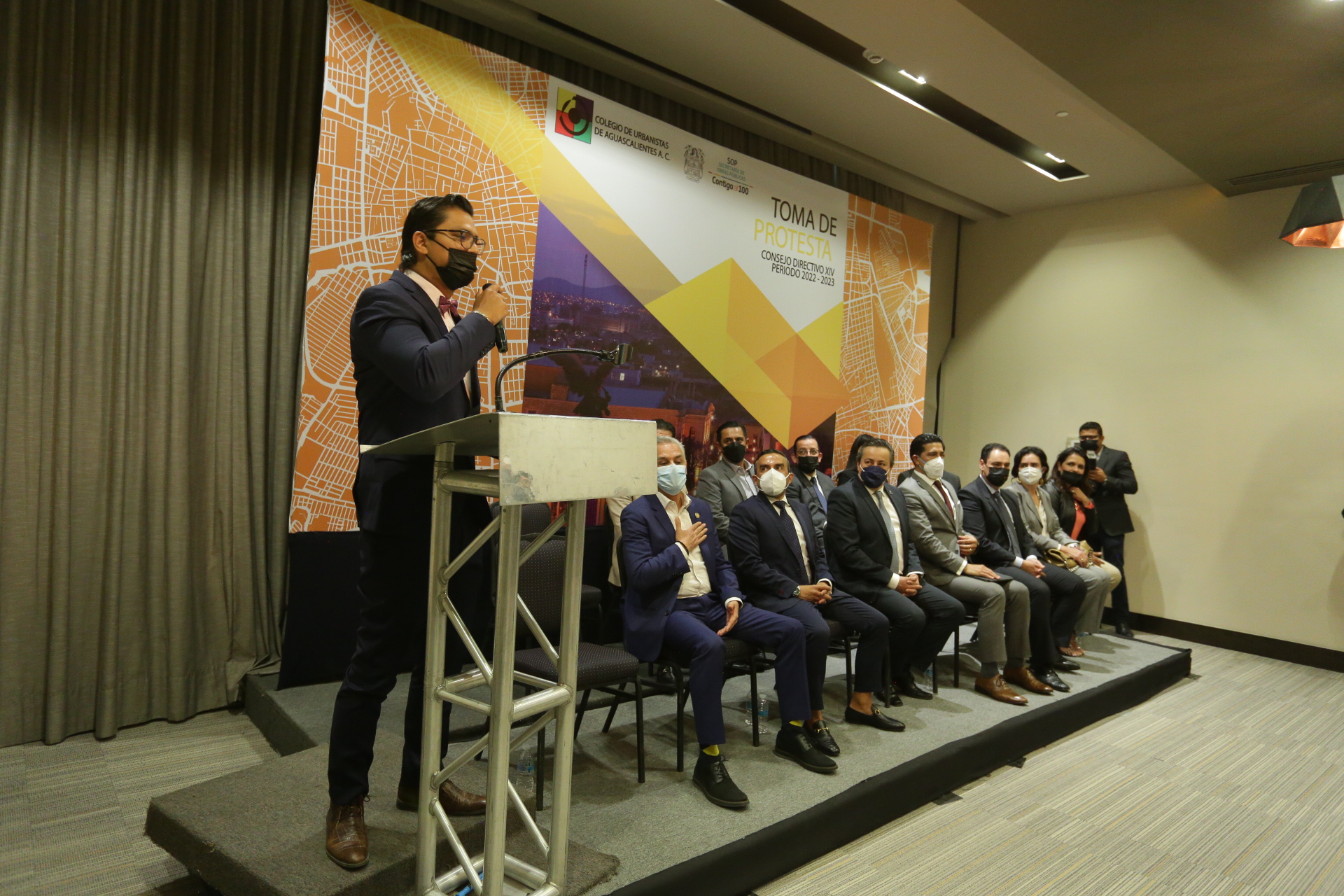 Durante la toma de protesta del Consejo Directivo del Colegio de Urbanistas, para el periodo 2022 -2023, que encabezará Misael Herrera, el presidente municipal de Aguascalientes, externó un reconocimiento a sus integrantes y estrechó lazos de colaboración para seguir construyendo una ciudad más ordenada y humana, priorizando el cuidado del medio ambiente, la movilidad y la accesibilidad.