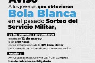 Deberán presentarse en las instalaciones de la 14/a Zona Militar en Av. Aguascalientes Oriente. El uso del cubrebocas es obligatorio.