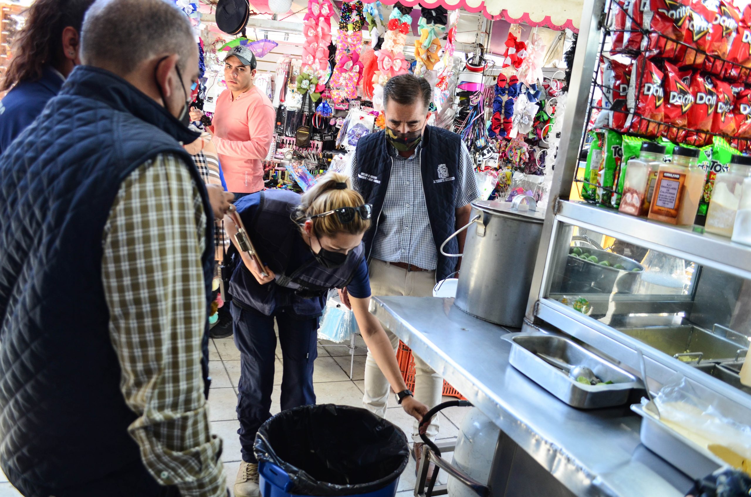 Con el objetivo de mantener el orden y cuidar la seguridad de locatarios y ciudadanos que acuden a los mercados y pasajes del centro de la ciudad, personal de la Dirección de Mercados, Estacionamientos y Áreas Comerciales en conjunto con la Coordinación de Protección Civil Municipal, realizó un recorrido en los locales gastronómicos del Mercado Terán, así como en los que se encuentran en la parte exterior.