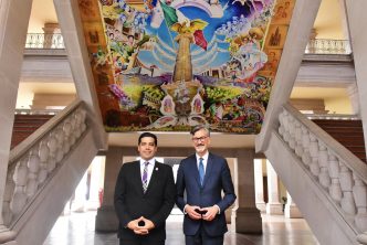 El presidente municipal, en compañía de regidores del H. Ayuntamiento de Aguascalientes, recibieron en las instalaciones de Palacio Municipal al Titular de la Embajada de Francia en México Jean-Pierre Asvazadourian, quien se encuentra en una gira de trabajo en la entidad.