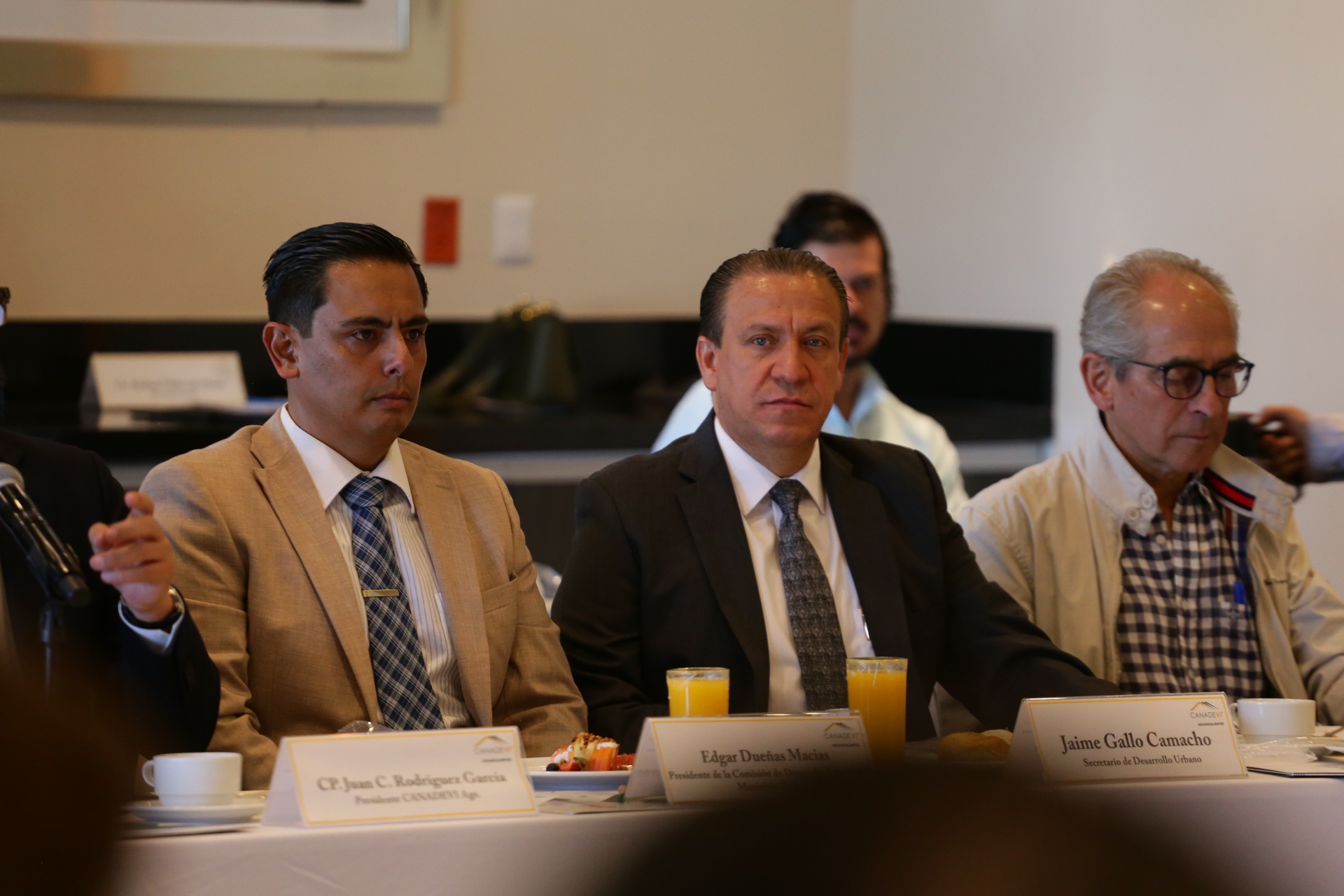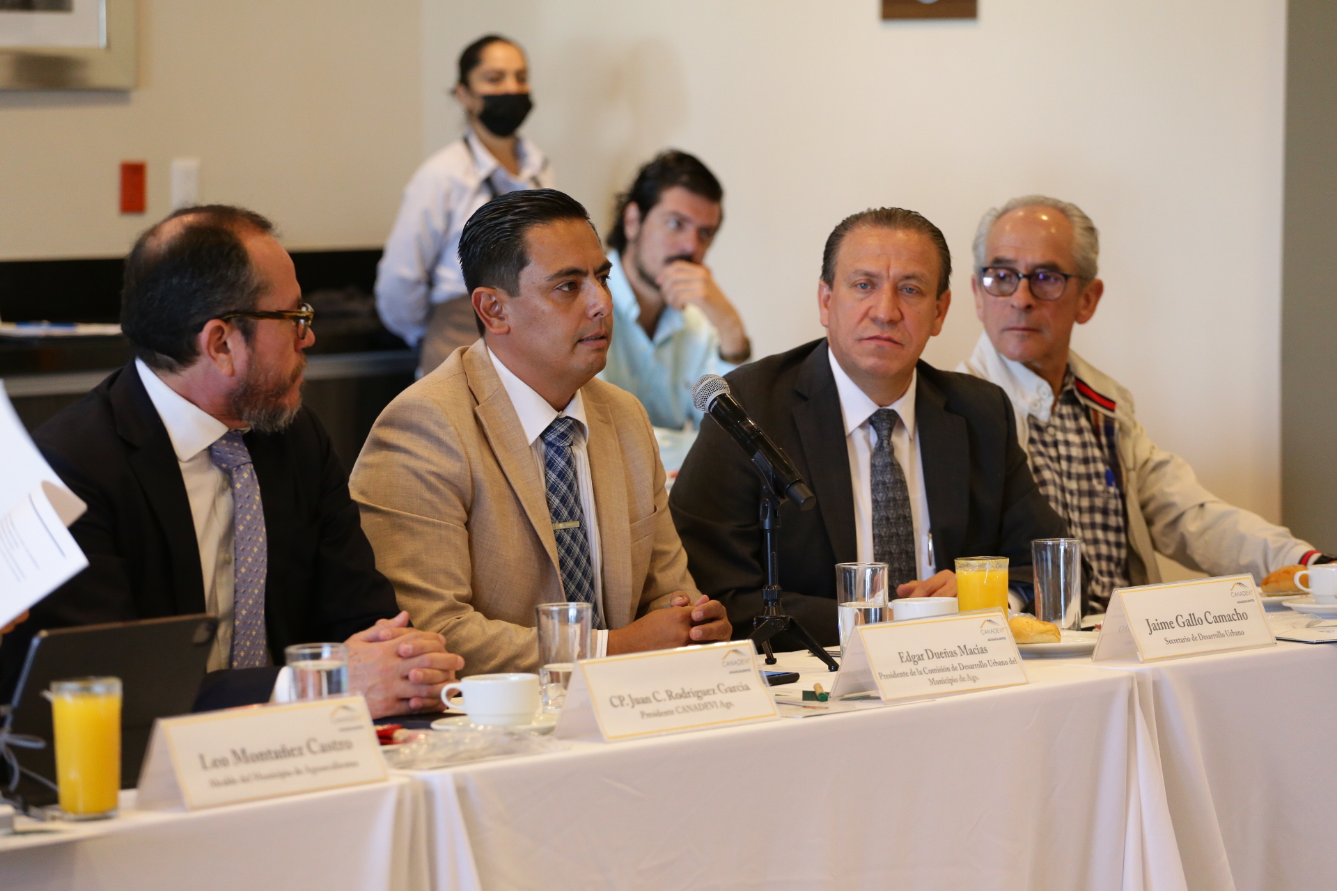 El presidente municipal de Aguascalientes sostuvo una reunión de trabajo con integrantes de la Cámara Nacional de la Industria de Desarrollo y Promoción de Vivienda (CANADEVI), en la que se analizaron proyectos favorables para el desarrollo ordenado de la ciudad.