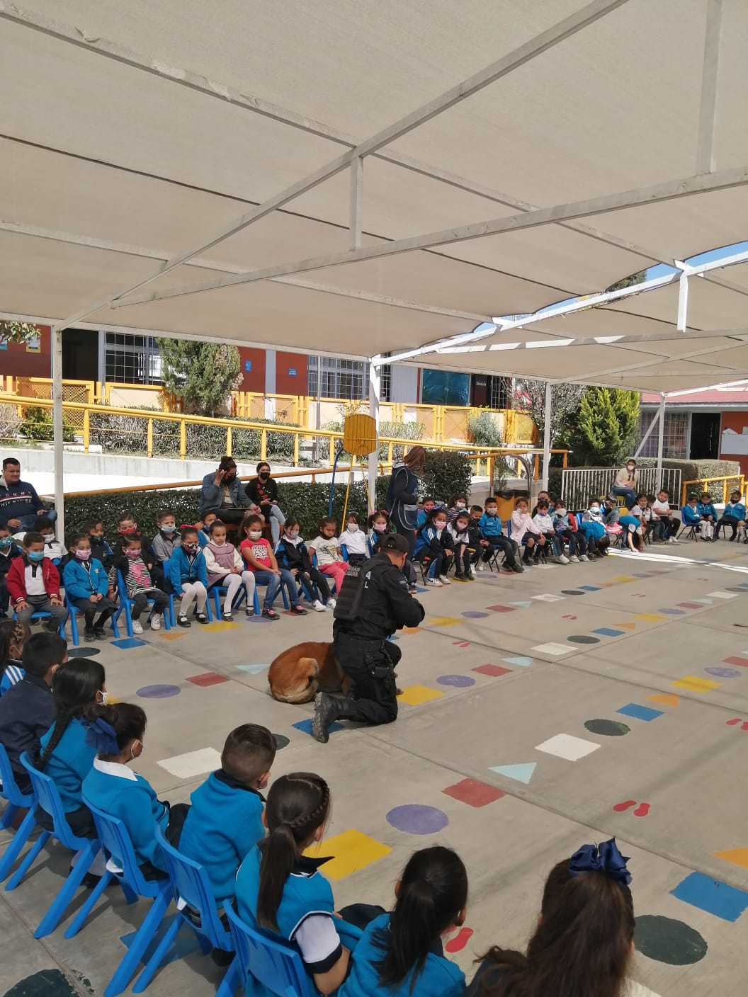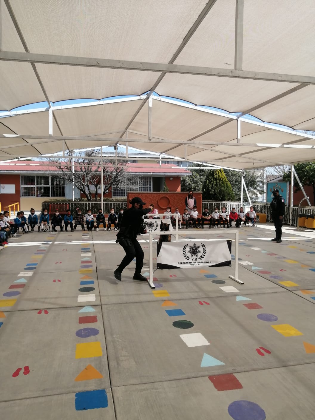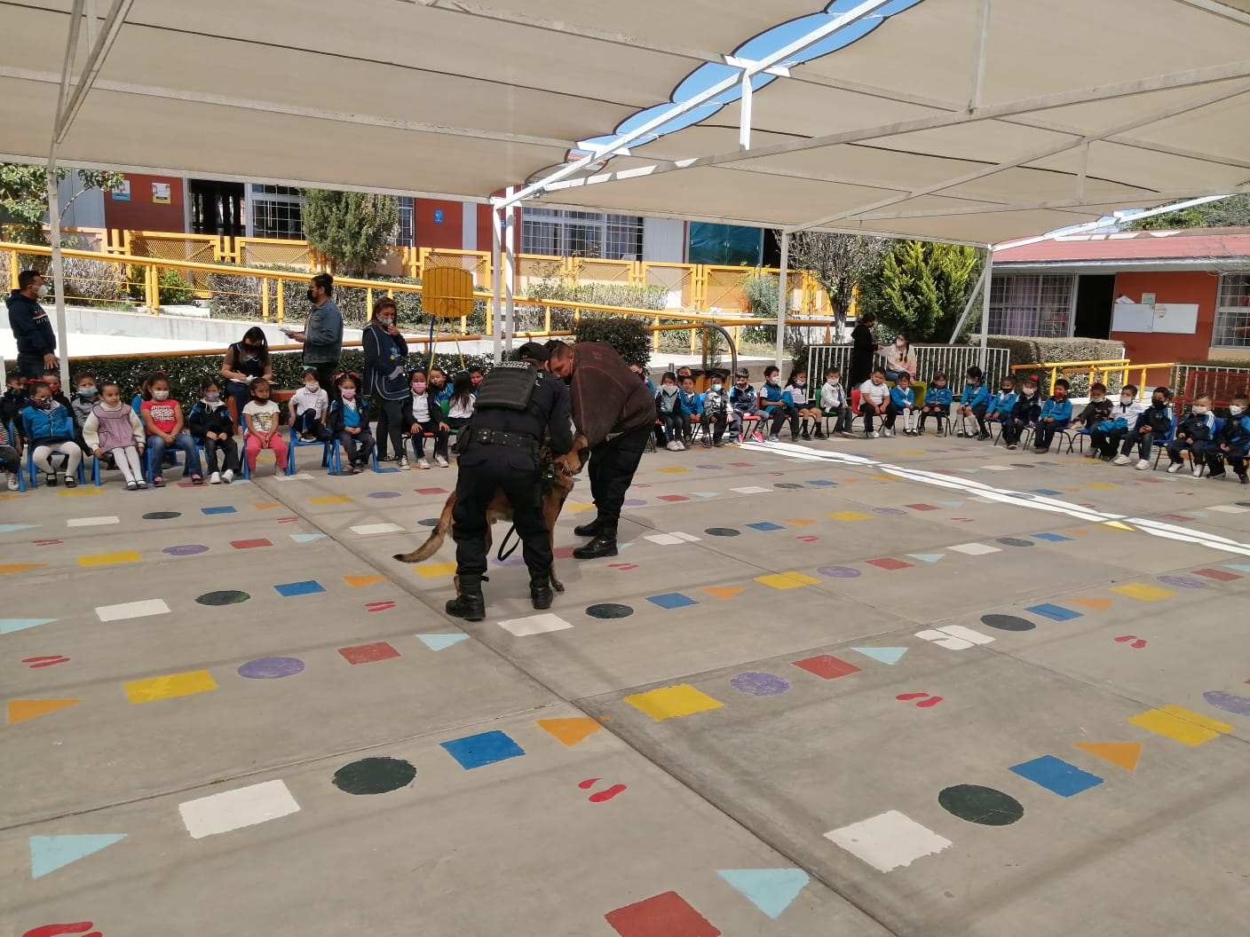 La División K9 del Grupo de Operaciones Especiales, realizó una exhibición con tres ejemplares: Matt, Ámbar y Camaro, en la cual niñas, niños y adultos conocieron las tareas de seguridad en las que participan los binomios caninos, como detección de estupefacientes, así como ataque y defensa.