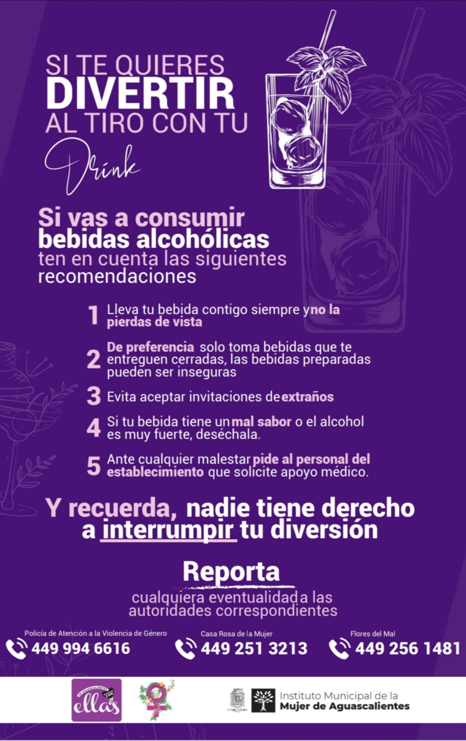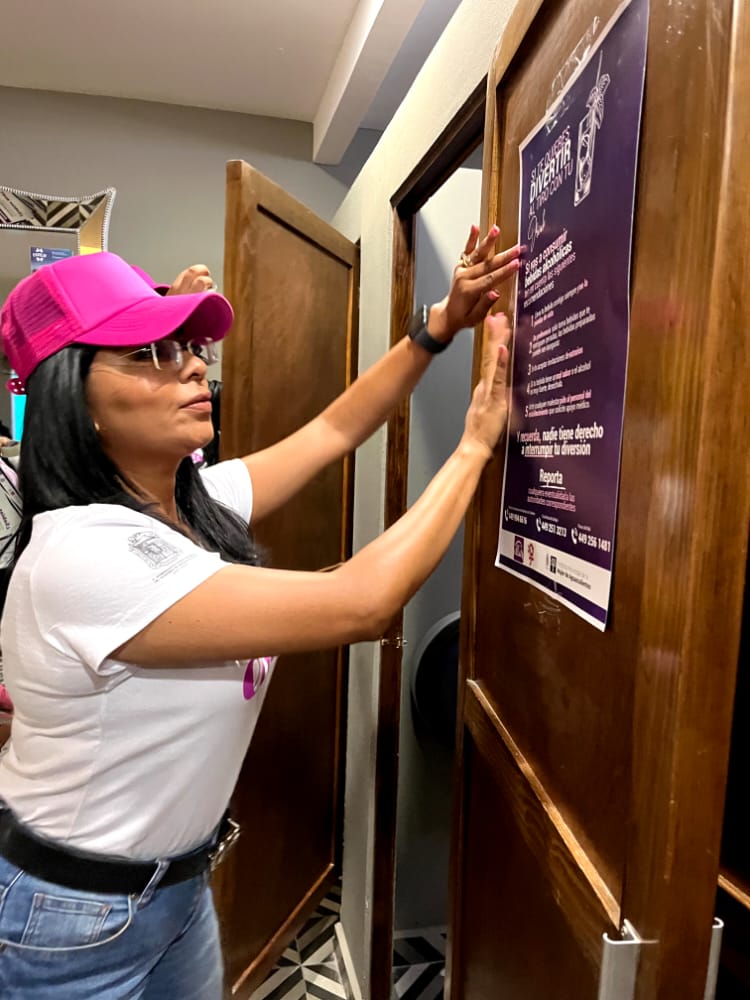 En un recorrido por el perímetro ferial el Instituto Municipal de la Mujer de Aguascalientes (IMMA), comenzó a instalar en establecimientos como bares y restaurantes los carteles «Si te quieres divertir, al tiro con tu drink» con recomendaciones de autocuidado para un consumo responsable de bebidas.