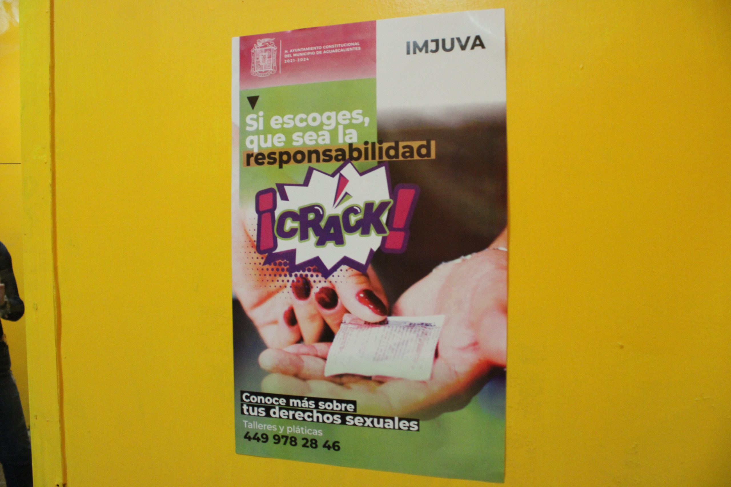 A su vez, el Instituto Municipal de la Juventud de Aguascalientes (IMJUVA), coloca los posters «Si escoges, que sea la responsabilidad», para concientizar a jóvenes sobre la prevención de embarazos no deseados y enfermedades de transmisión sexual, colocando la información correspondiente en antros y bares y los datos de esta dependencia municipal a la que pueden solicitar diferentes tipos de orientación.