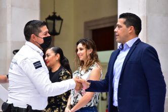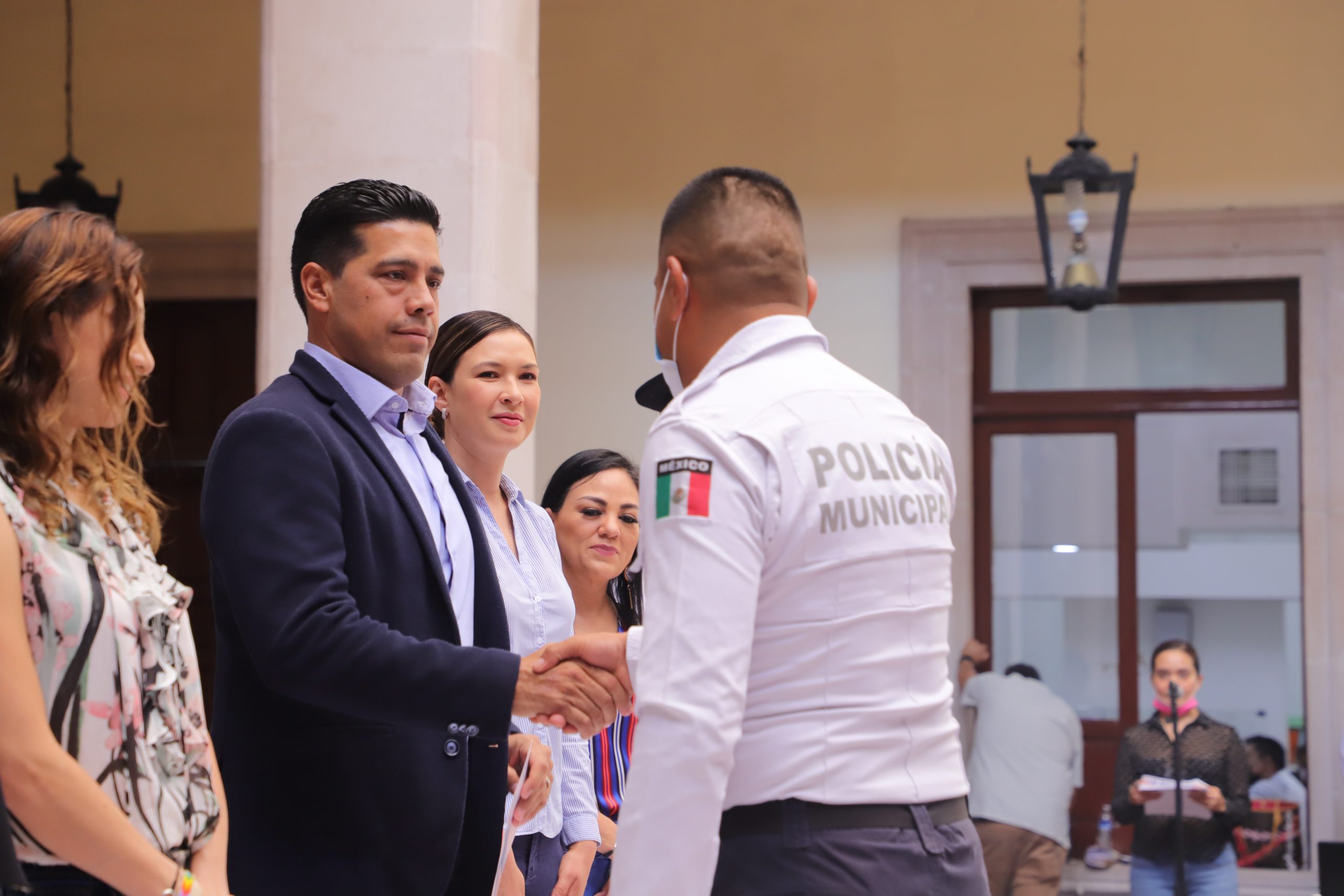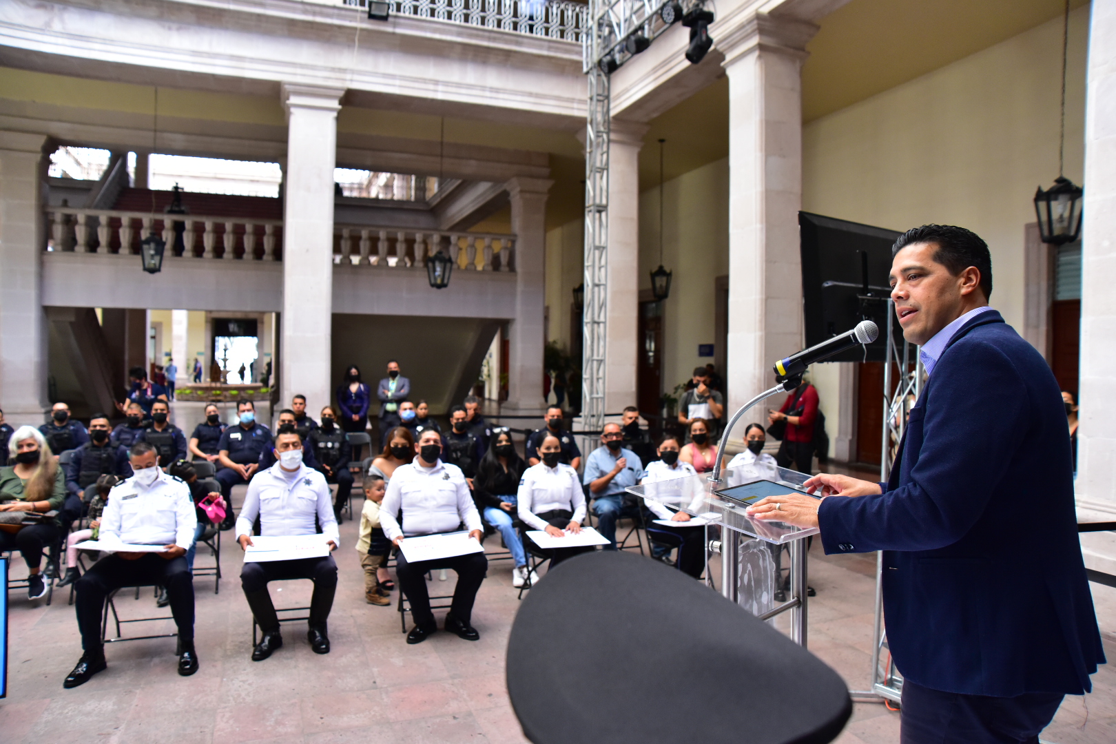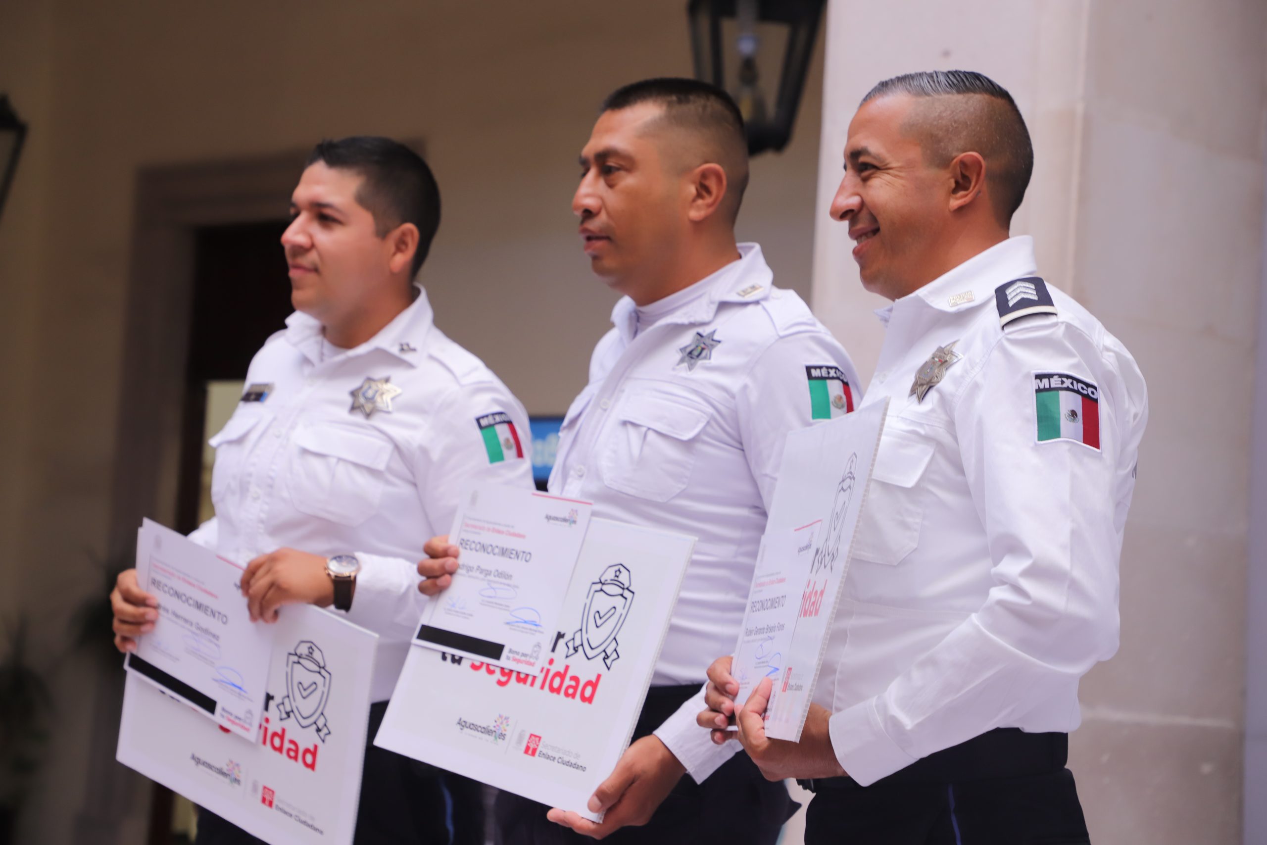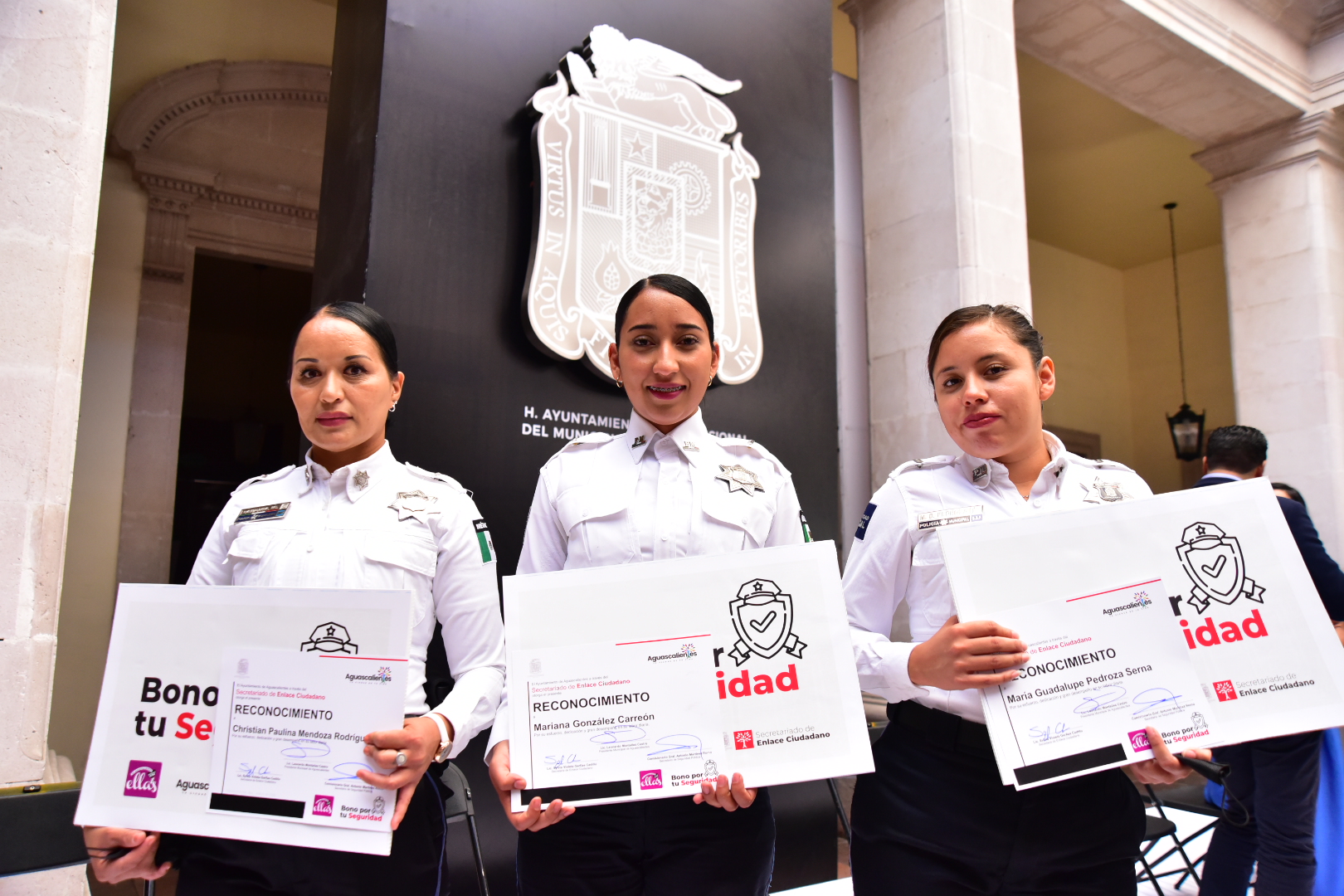 Por su profesionalismo y compromiso con la tranquilidad e integridad de la ciudadanía, empresarios de Aguascalientes entregaron a Policías del Municipio de Aguascalientes el Bono Por Tu Seguridad; labor que llena de orgullo a las familias de los uniformados, a la ciudadanía y que es ejemplo para las nuevas generaciones.