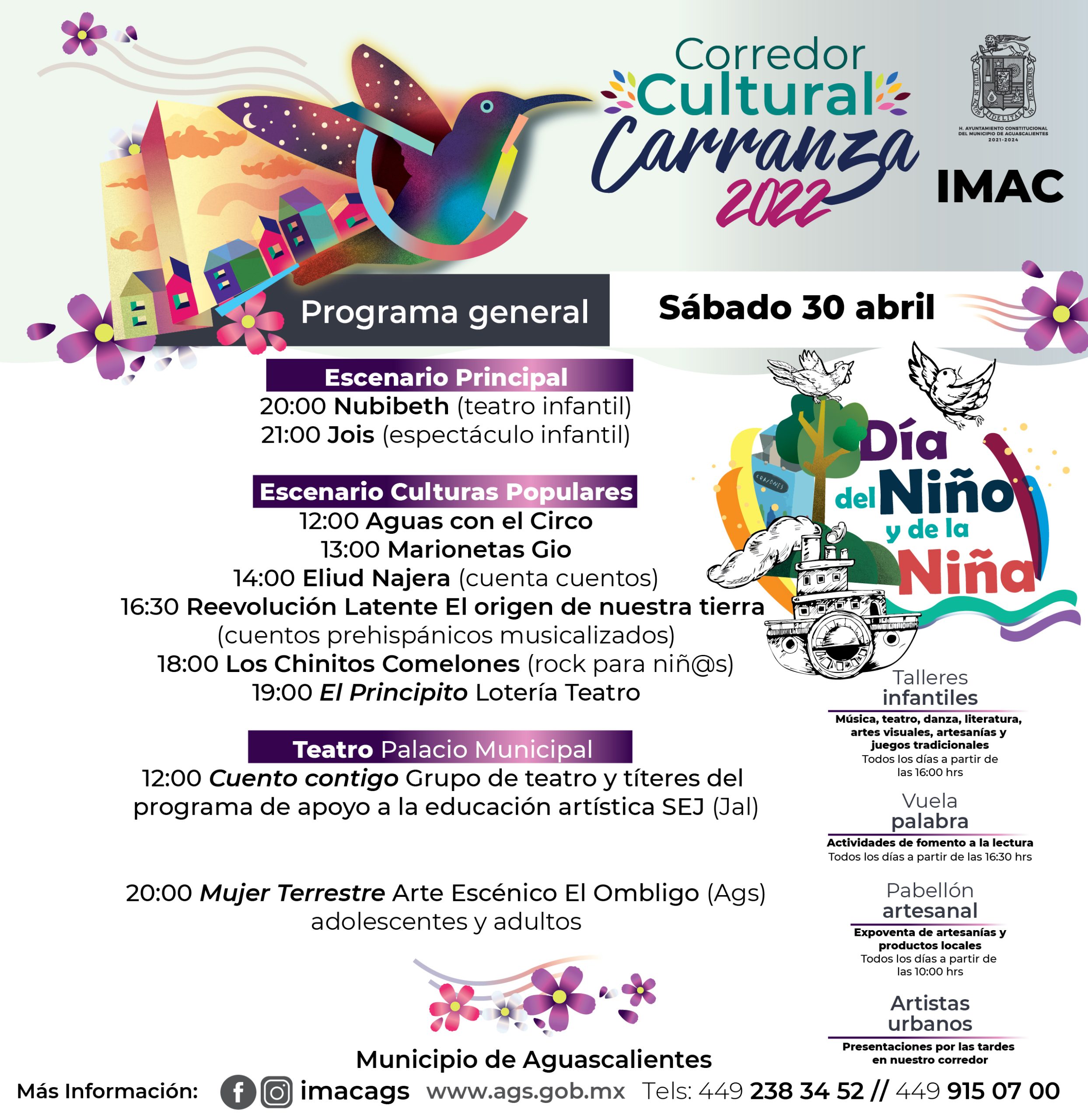 Para festejar el Día del Niño en 2022 el Instituto Municipal Aguascalentense para la Cultura (IMAC) invita este sábado 30 de abril a disfrutar de las actividades especiales que el Corredor Cultural Carranza en la Feria de San Marcos tiene preparadas para los pequeños.