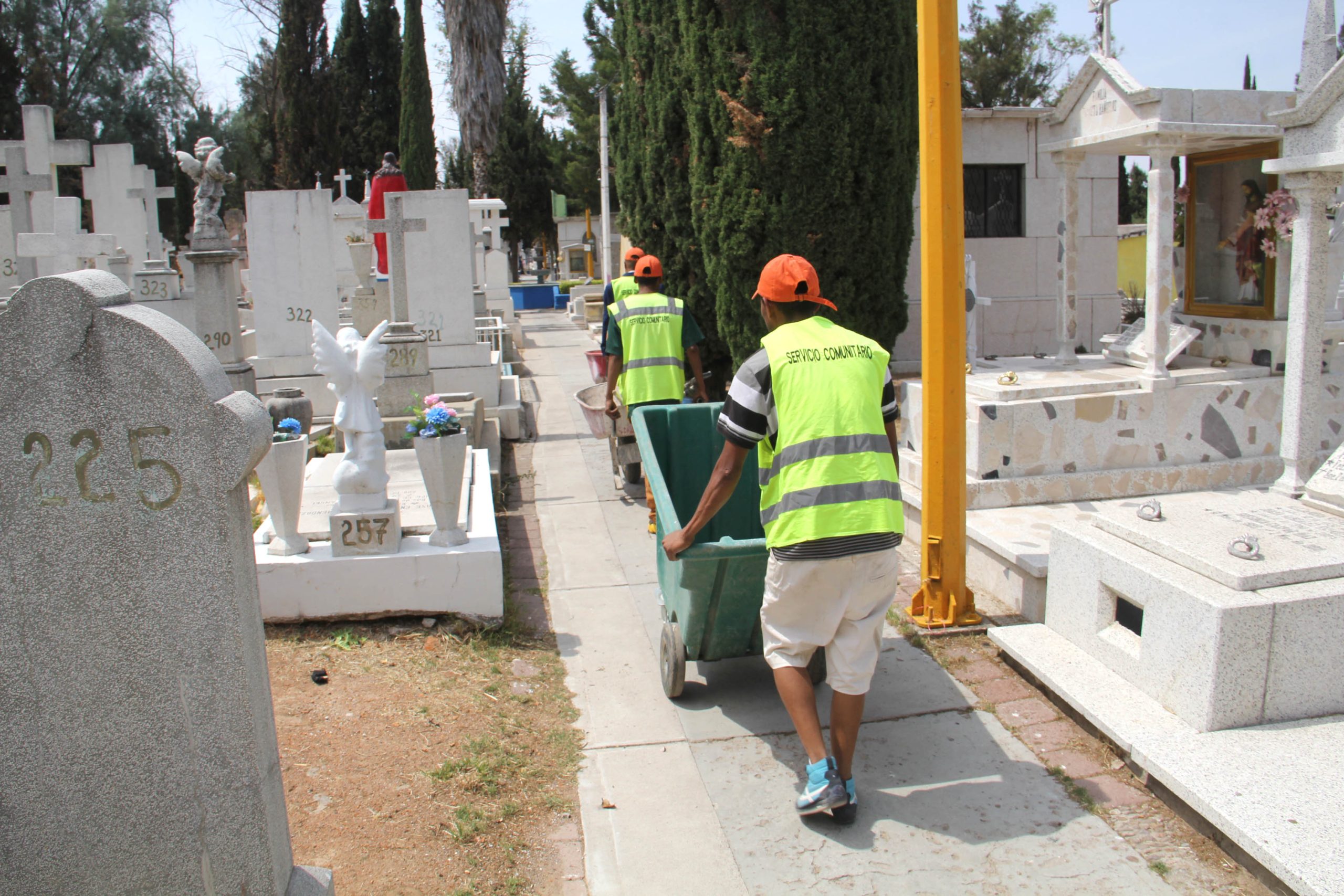 Se trabaja principalmente en piletas y sanitarios, con la intención de que los deudos cuenten con servicios dignos; destacando que para los días mencionados se contará con la participación de 100 trabajadores y el apoyo de la Secretaría de Seguridad Pública, Coordinación de Protección Civil y la Coordinación General de Salud.