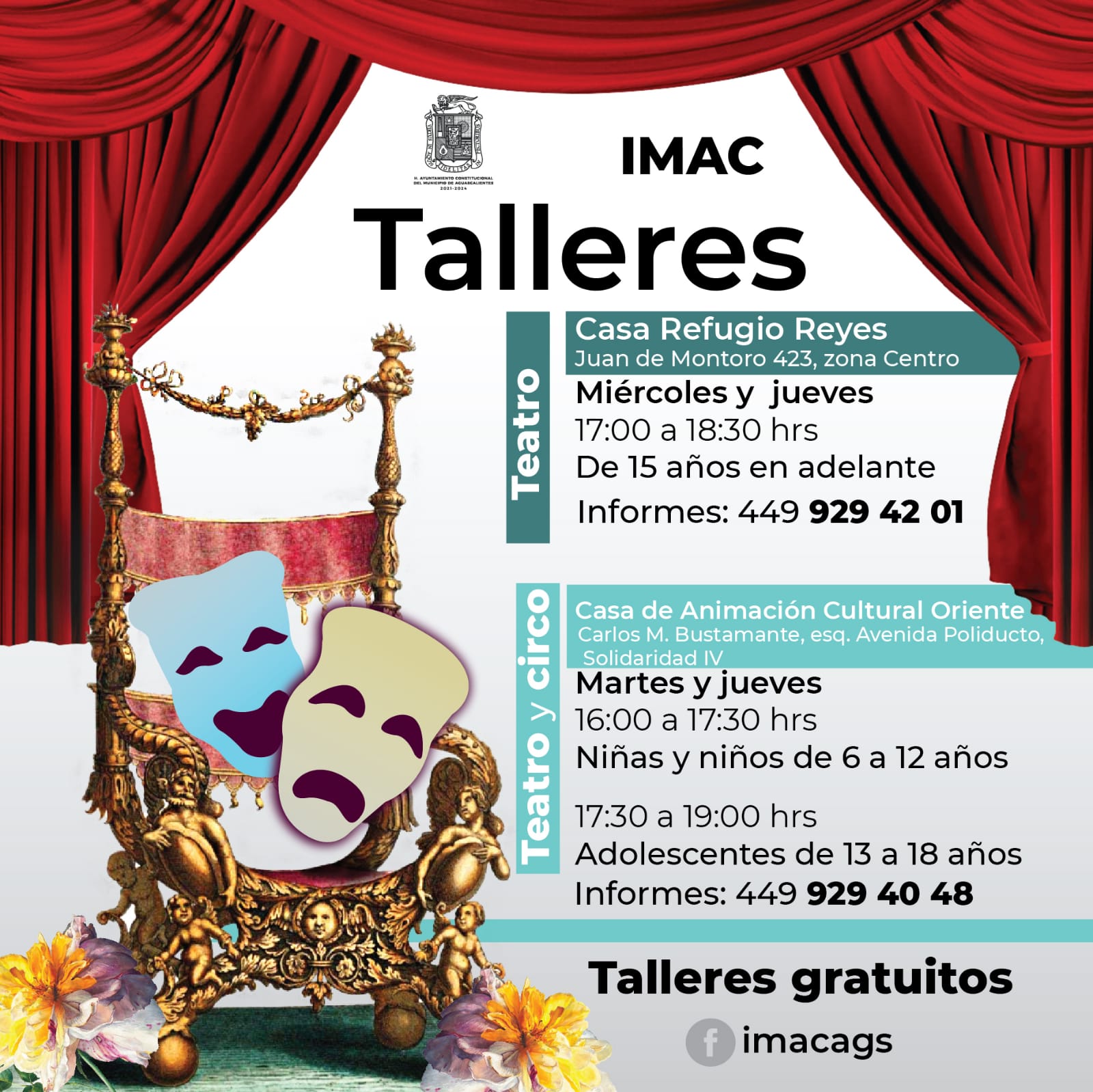 Para mayor información las personas interesadas pueden comunicarse a los números telefónicos 449-929-42-01 y 449- 929-40-48 y de esta forma ser parte de los cursos que el IMAC ofrece a la ciudadanía.