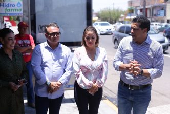 El presidente municipal acompañado de integrantes del H. Ayuntamiento y la diputada presidenta de la Comisión de Seguridad Pública de la LXV Legislatura Local, mencionó que con la semaforización de estos cruceros se atienden las peticiones de los habitantes, brindando mayor orden y seguridad vial a vecinos, comerciantes y cientos de estudiantes que tienen que cruzar esta transitada avenida para llegar a los centros escolares que hay en la zona.