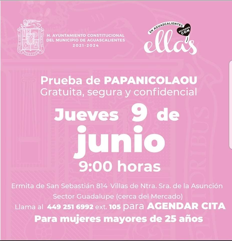 Las personas interesadas deben de agendar su cita en el teléfono 449 251 32 13, extensión 105 para posteriormente asistir a dicha jornada en la Casa Rosa de las Mujeres ubicada en Ermita de San Sebastián #814, Villas de Nuestra Señora de la Asunción.