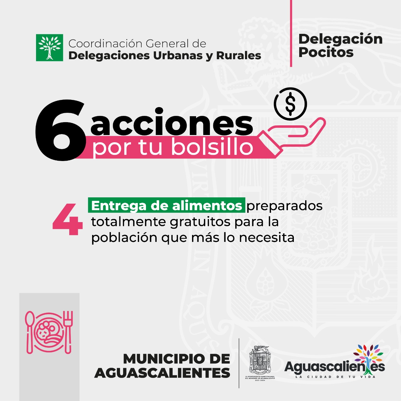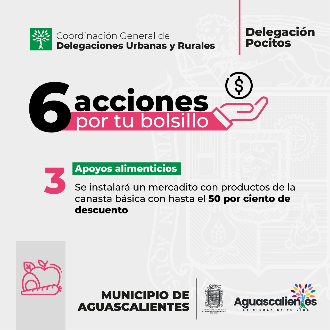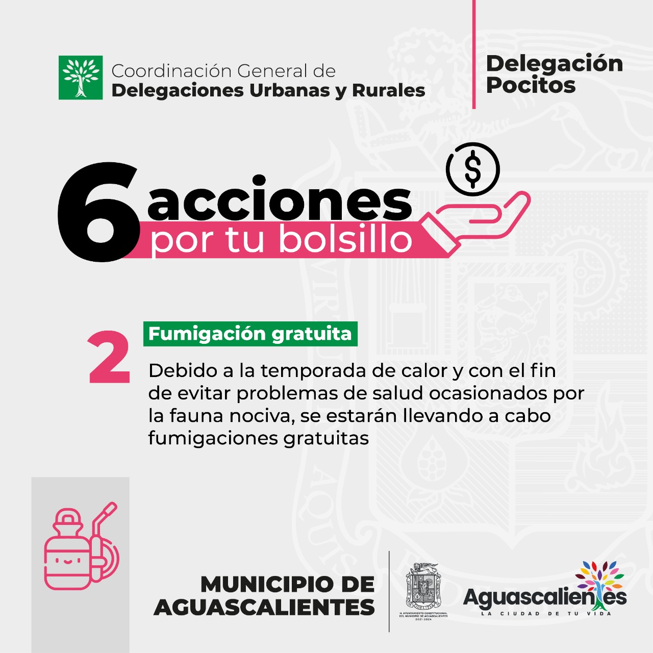 La presidencia municipal de Aguascalientes, a través de la Delegación Pocitos pone en marcha la campaña denominada “6 acciones por tu bolsillo” con el propósito de beneficiar la economía familiar de los sectores más vulnerables que residen en el poniente de la ciudad capital.
