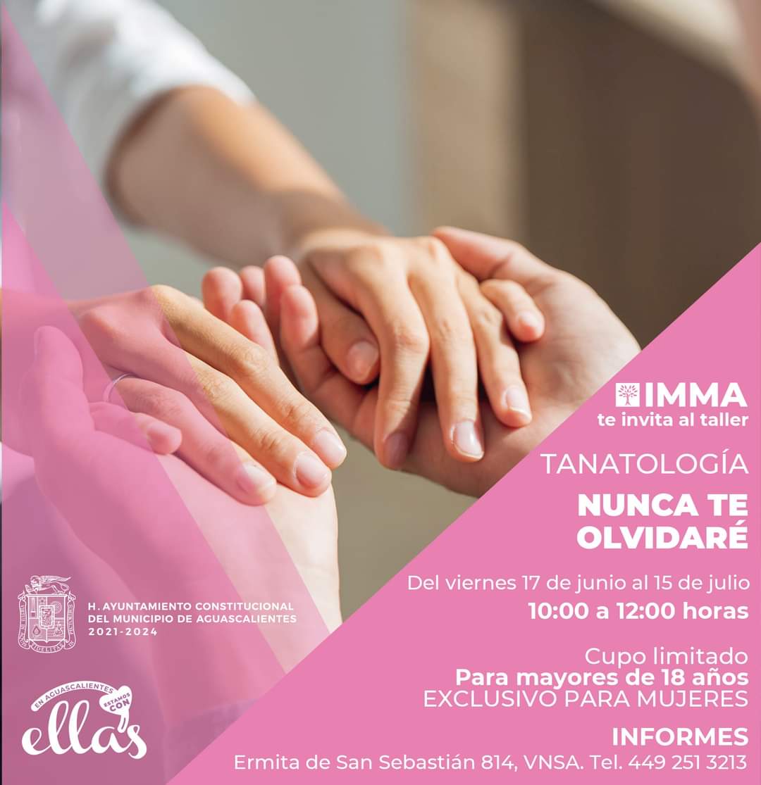 El Instituto Municipal de la Mujer de Aguascalientes (IMMA), con el firme compromiso de contribuir en el bienestar de las mujeres que han sufrido la pérdida de un ser querido, ofrecerá el taller Tanatológico “Nunca te olvidaré”, a través del cual se les acompaña a vivir, comprender, transformar y aceptar su duelo.