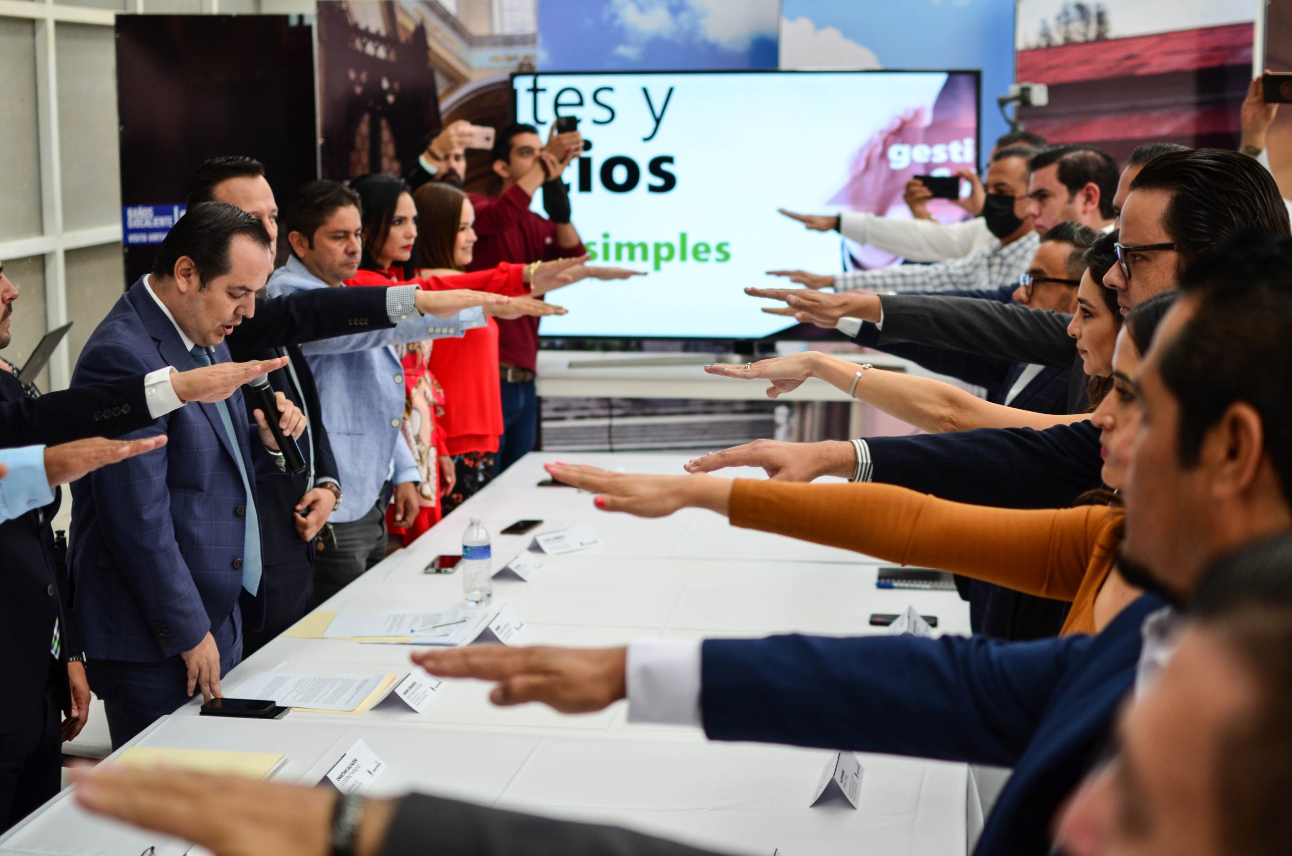 El secretario del H. Ayuntamiento y director General de Gobierno, Jaime Beltrán Martínez, tomó la protesta a los integrantes de este Consejo, quienes asumieron el compromiso de coordinar y fomentar la mejora en los procesos, así como reducir tiempos de respuesta.