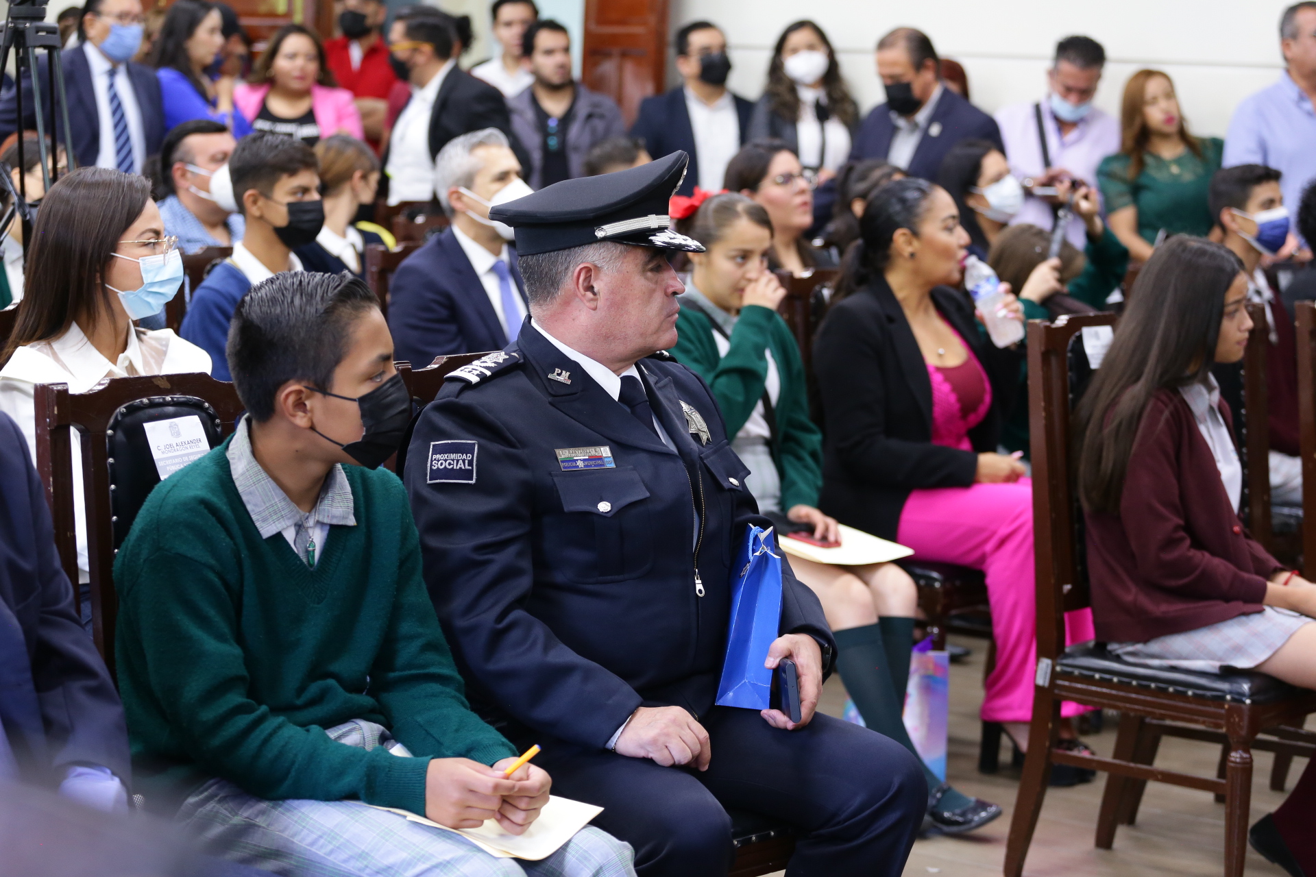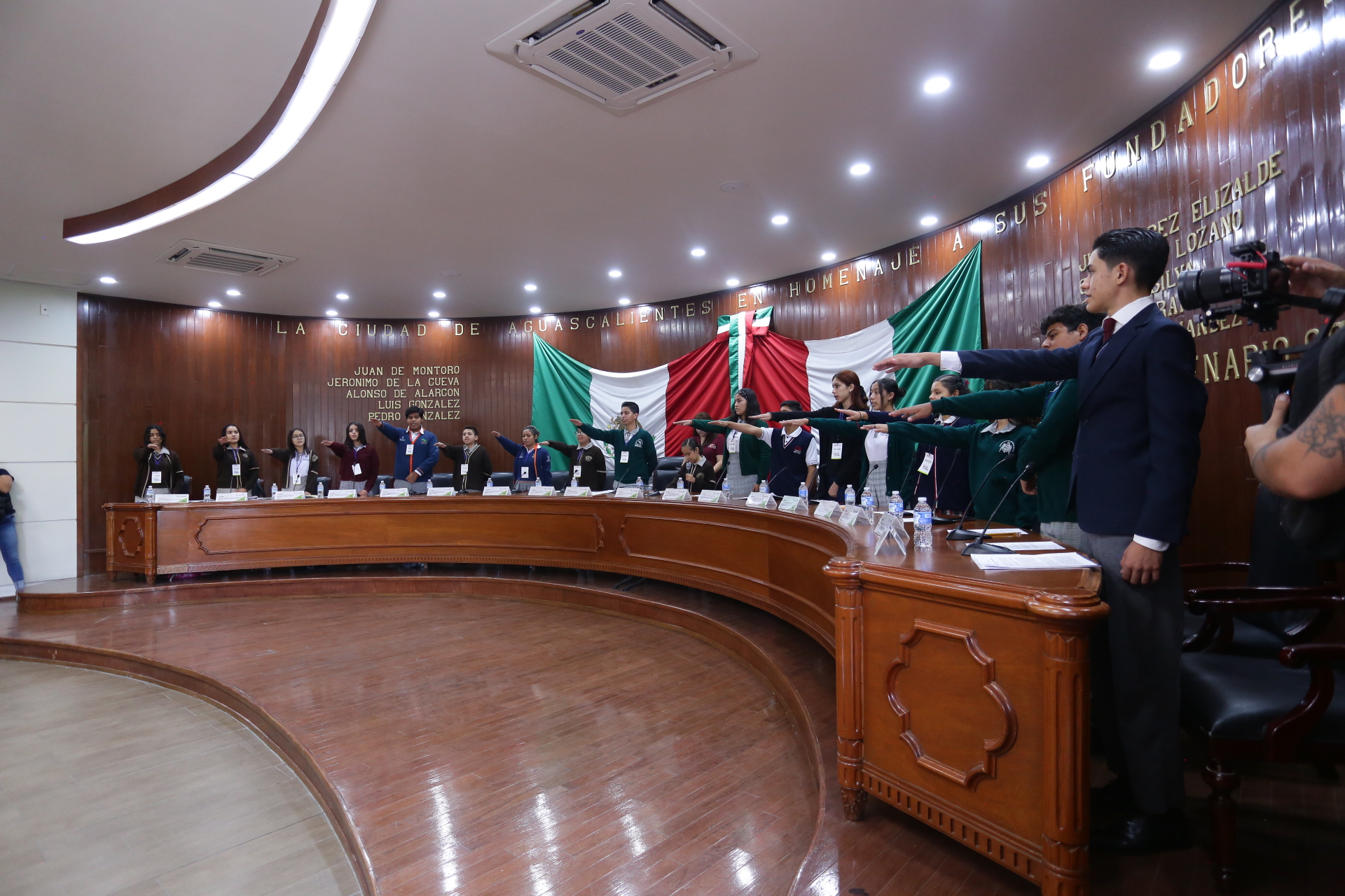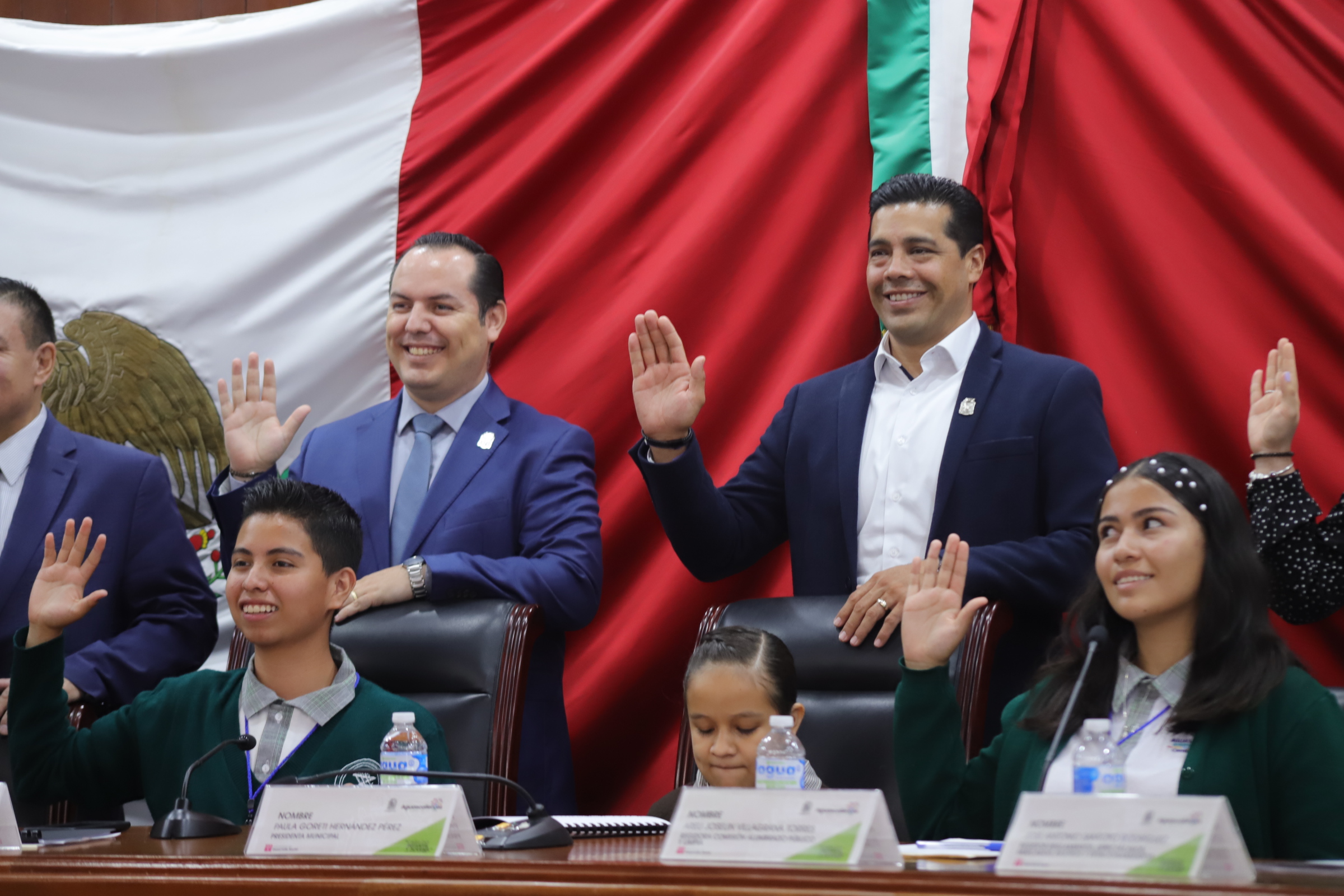 Los estudiantes de entre 12 y 16 años rindieron protesta asumiendo el compromiso de colaborar en asuntos sociales y de desarrollo que impacten positivamente en el entorno; la presidenta por un día, Paula Goreti Hernández Pérez, de 13 años, es un ejemplo de superación, su discapacidad visual no le impide desempeñarse como alumna destacada de la Secundaria Técnica No. 32 y fue ella quien dio la bienvenida a todos los asistentes mostrándose emocionada por poder ser parte de dicho Cabildo Juvenil, participando a su vez en las propuestas plasmadas por sus compañeros.