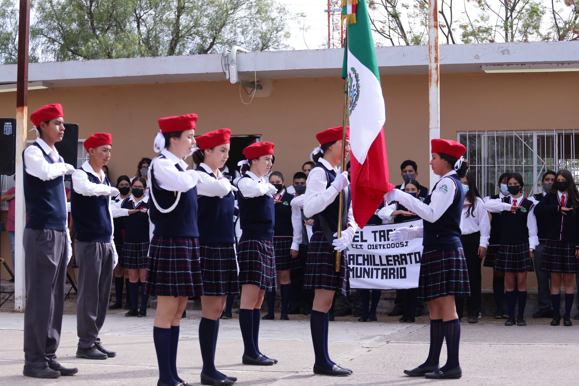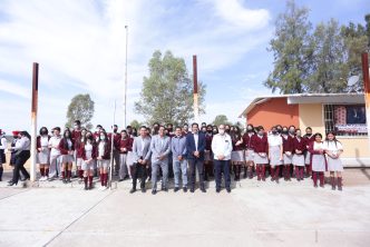 Este lunes el presidente municipal Leonardo Montañez visitó el Telebachillerato Comunitario «El Taray», en donde en el marco de los Honores a la Bandera, reconoció a los alumnos destacados y les felicitó por ser un ejemplo de superación, motivándolos a continuar por el buen camino que los impulse al éxito y a seguir creciendo como personas sanas y profesionales destacados.