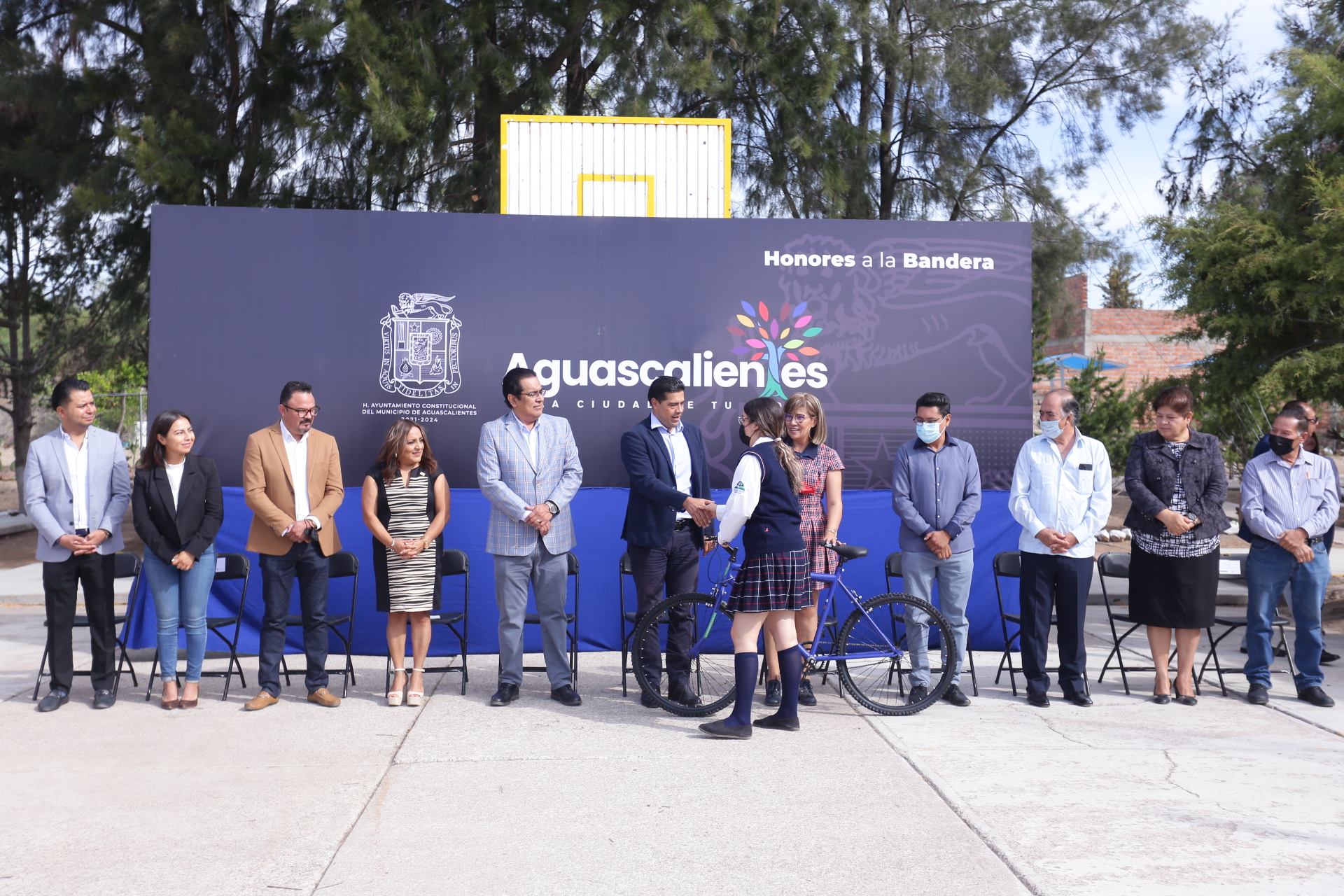 Se contó con la presencia además de estudiantes de la Telesecundaria No.1 «Plutarco Elías Calles» y de la escolta del Telebachillerato «La Cieneguilla», quienes entonaron el himno nacional acompañados de la Banda Sinfónica Municipal.