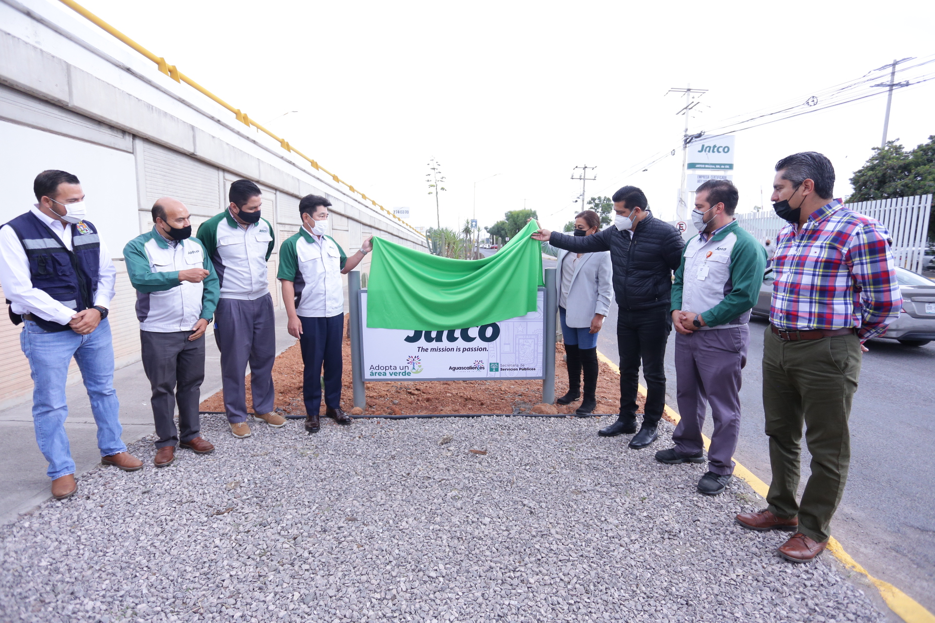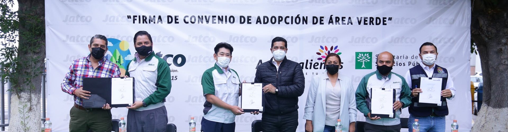 El presidente municipal, Leonardo Montañez, firmó con Jatco un acuerdo de colaboración a través del cual como empresa ambientalmente responsable se suma al programa “Adopta un Área Verde” rehabilitando y dando mantenimiento a la lateral del puente en la 45 sur a la altura de la carretera a Los Arellano.