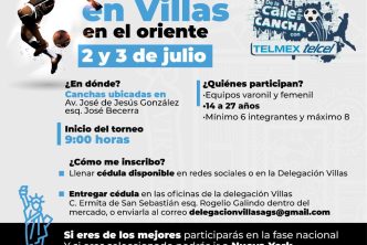 Omar Ruiz Vázquez, titular de la Delegación Villas, reiteró que el equilibrio físico, emocional y una vida sana son necesarios para el desarrollo integral, y explicó que en el torneo relámpago «De la Calle a la Cancha», se buscará seleccionar el 2 y 3 de julio en las canchas ubicadas en las avenidas José de Jesús González y José Becerra en esta parte del oriente de la ciudad, a los mejores jugadores de 14 a 27 años para integrar el representativo estatal en la rama varonil y femenil que se disputará en la ciudad de Puebla y posteriormente los seleccionados pasarán al mundial de Nueva York.