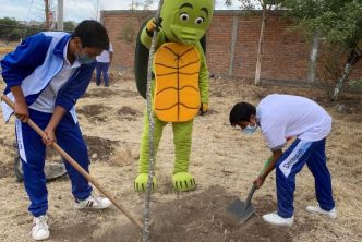 En este marco, en la secundaria General No. 13, Ricardo Flores Magón, se apoyó en la siembra de árboles endémicos de la región, tales como el huizache y mezquite, además de árboles frutales, mismos que el alumnado y docentes se comprometieron a cuidar para su óptimo crecimiento y conservación.