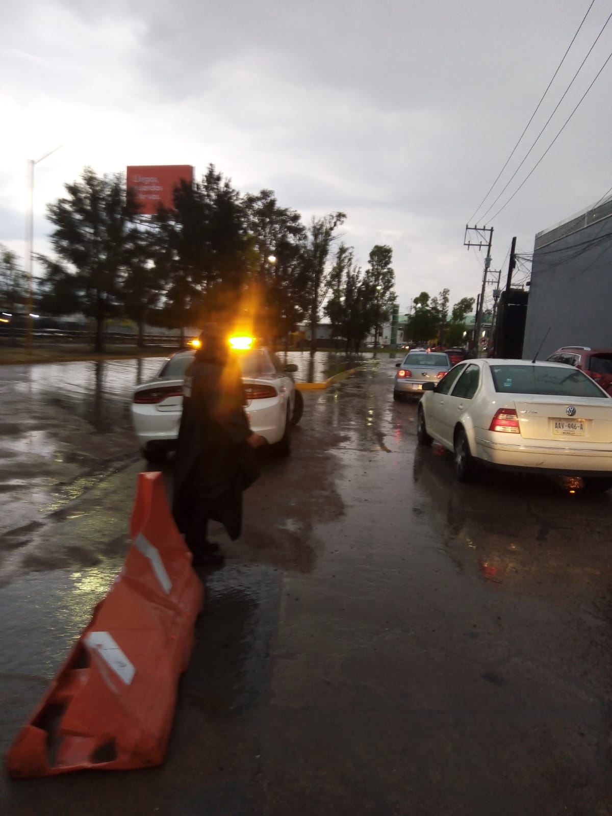 - Fueron cerrados al paso vehicular puntos como Av. Aguascalientes frente a la XIV Zona Militar y el par vial Enrique Estrada – Gabriela Mistral, debido a grandes encharcamientos