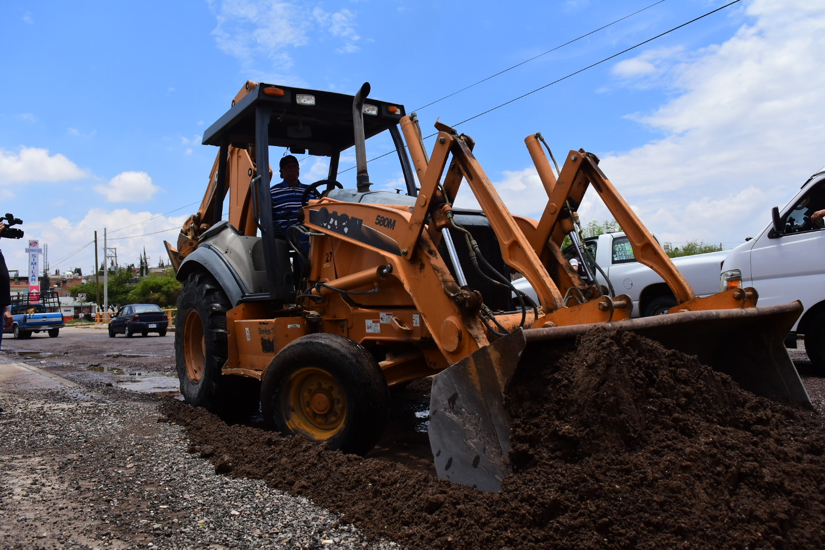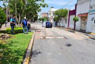 Posteriormente acudió también a Gerónimo de la Cueva y Jesús González García en Villas de Nuestra Señora de la Asunción en donde se realizan trabajos de rellenado con fresado en zonas que sufrieron alguna deformación, es importante mencionar que el municipio trabajará en la rehabilitación de esta avenida con alto flujo vehicular.