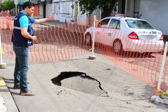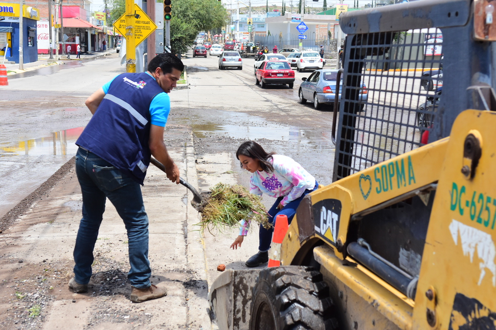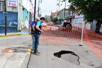 Este domingo, acudió a partes  con reporte de afectación como el centro de la ciudad, donde se presentó un colapso del colector sanitario en la calle Josefa Ortiz de Domínguez, donde el Municipio realizará trabajos para la rehabilitación de la red sanitaria.