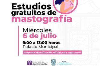 • Este 6 de julio en Palacio Municipal se otorgarán pases para estudios gratuitos de mastografía y se orientará a las mujeres sobre la autoexploración