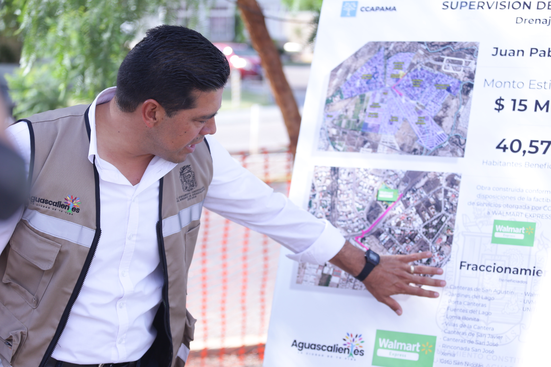 Por su parte, el encargado de la Comisión Ciudadana de Agua Potable y Alcantarillado del Municipio de Aguascalientes (CCAPAMA), Rafael Berumen Esparza, destacó que son alrededor de 15 millones de pesos de inversión por parte de la iniciativa privada en beneficio especialmente para habitantes de fraccionamientos como Canteras de San Agustín, Jardines del Lago, Porta Canteras, Fuentes del Lago, Loma Bonita y Villas de la Cantera, entre otros.