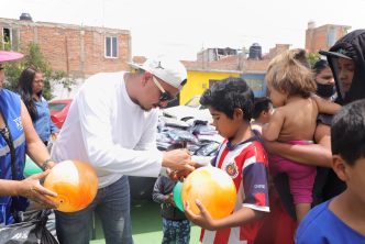 Asimismo, personal de la Coordinación de Delegaciones Urbanas y Rurales entregaron a los vecinos de la zona diversos artículos como: ropa, zapatos, juguetes, plantas a cambio de sus tapitas de plástico.
