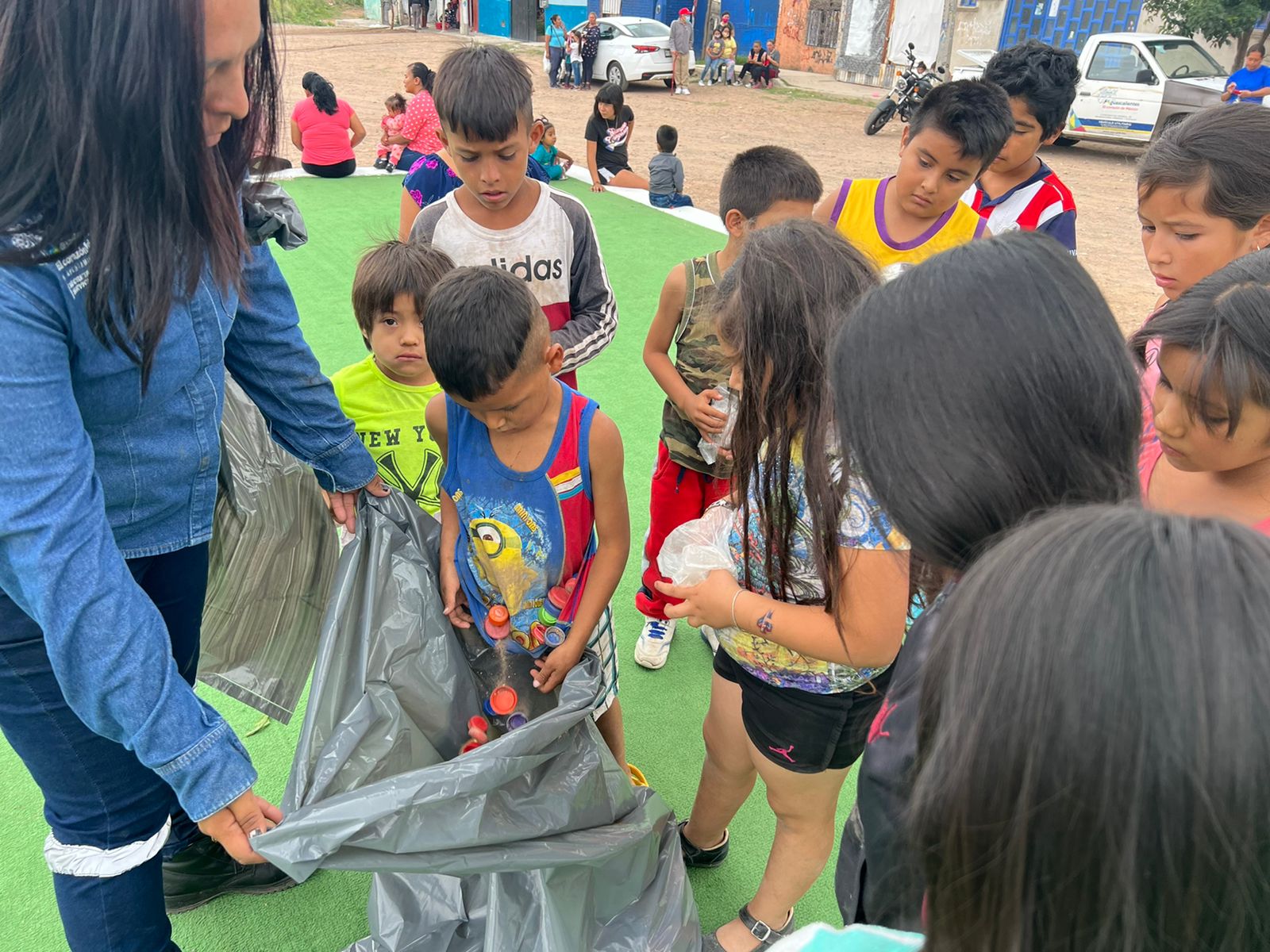 Asimismo, personal de la Coordinación de Delegaciones Urbanas y Rurales entregaron a los vecinos de la zona diversos artículos como: ropa, zapatos, juguetes, plantas a cambio de sus tapitas de plástico.