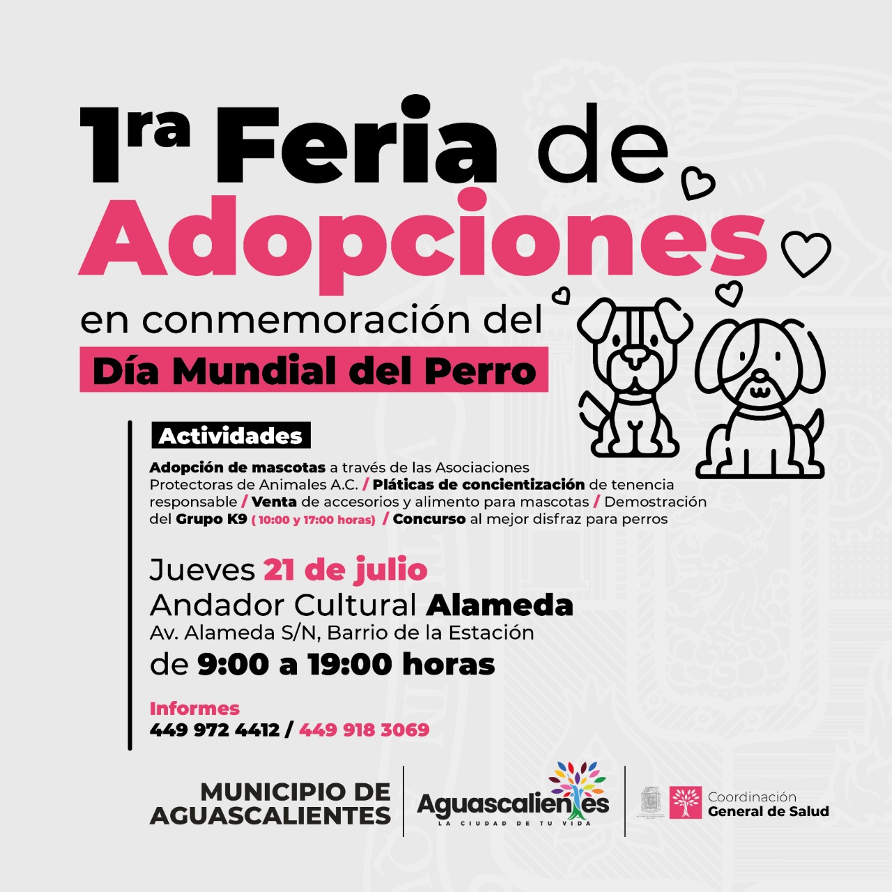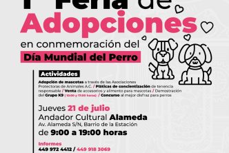 El Municipio de Aguascalientes a través de la Coordinación General de Salud y el Departamento de Salud y Bienestar Animal, para conmemorar el Día Mundial del Perro, llevarán a cabo este 21 de julio, la primera Feria Municipal de Adopciones Caninas, con la finalidad de brindarles un hogar.