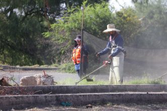 El municipio de Aguascalientes continúa con los trabajos de rehabilitación de espacios públicos en diferentes puntos de la capital con el propósito de que las familias vivan en una ciudad más limpia y segura, a través de acciones de desmalezado, papeleo, levantamiento de basura, trabajos preventivos y correctivos del alumbrado público.