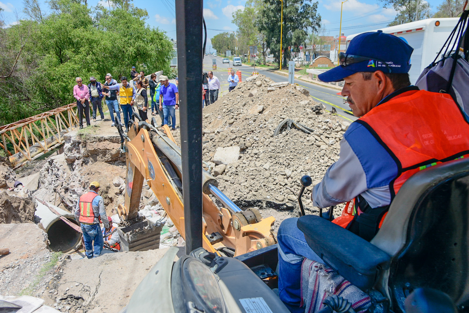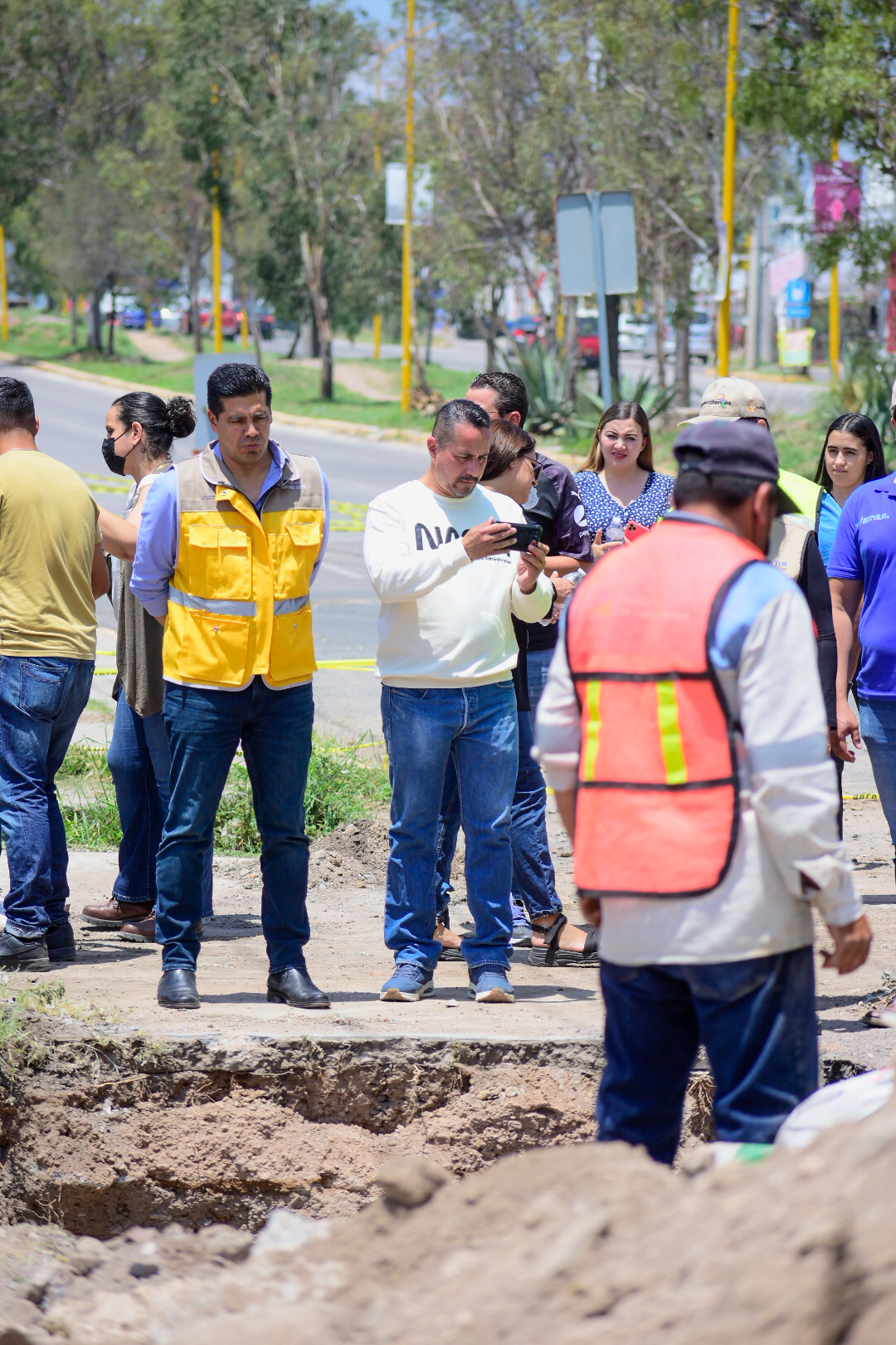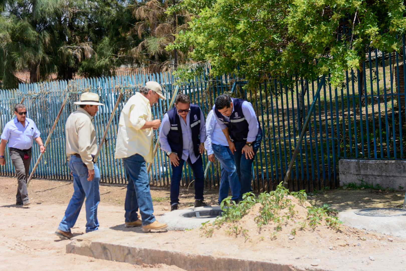 Posteriormente el presidente Leonardo Montañez se trasladó al parque México para constatar los trabajos de construcción del colector sanitario ubicado en esta zona, obra con la que se busca aumentar la capacidad de conducción de aguas sanitarias a la planta de tratamiento del parque.