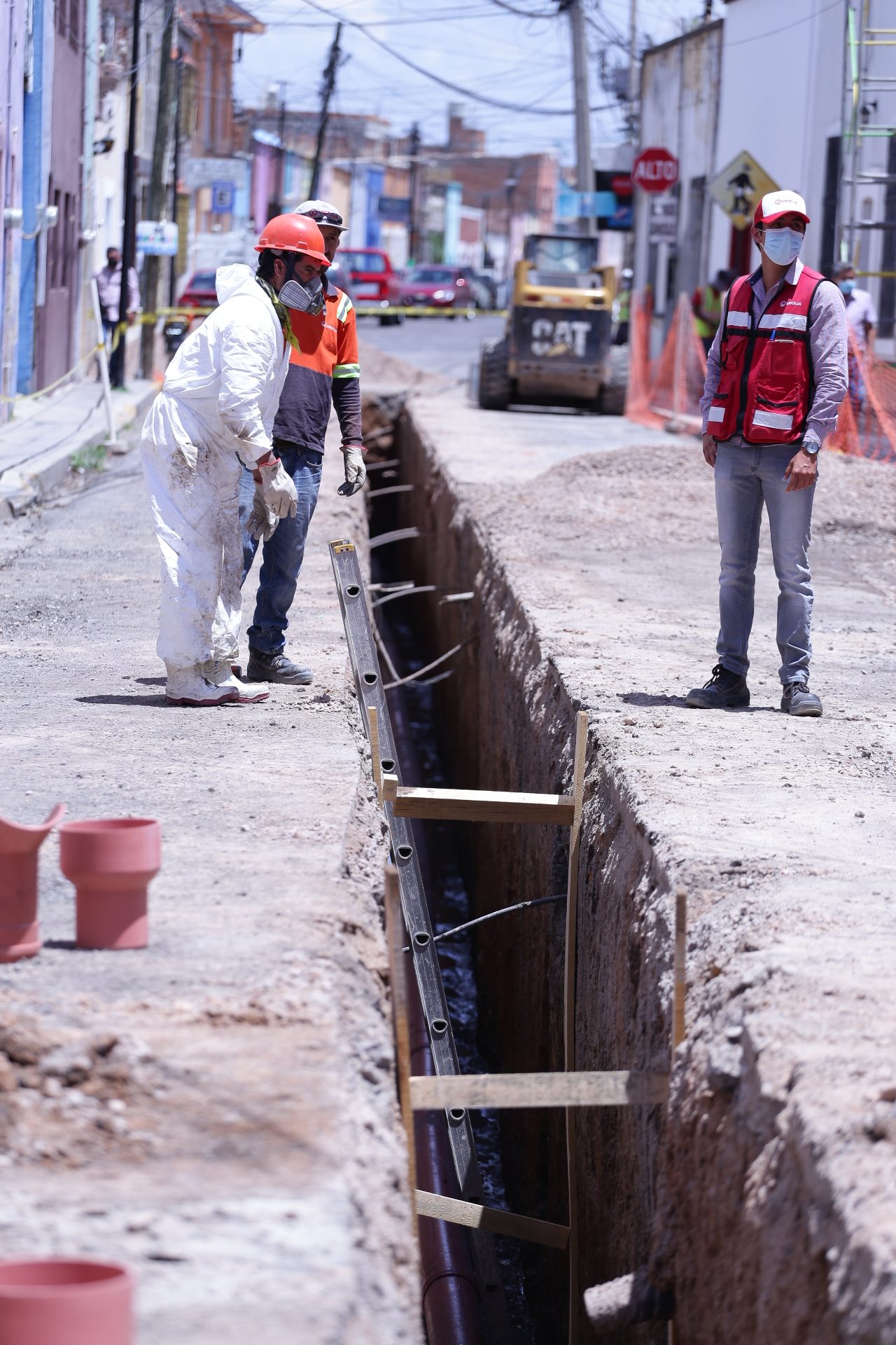 Rafael Berumen Esparza, encargado de despacho de la Comisión Ciudadana de Agua Potable y Alcantarillado del Municipio de Aguascalientes (CCAPAMA), explicó que se trabaja en el tramo de las calles Leona Vicario a Abasolo, en donde se instalarán 100 metros lineales de tubería, así como 83 descargas domiciliarias, con una inversión total para este proyecto cercana al medio millón de pesos.