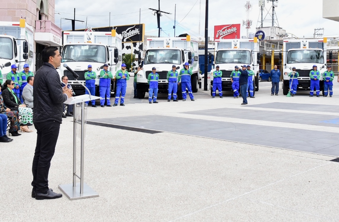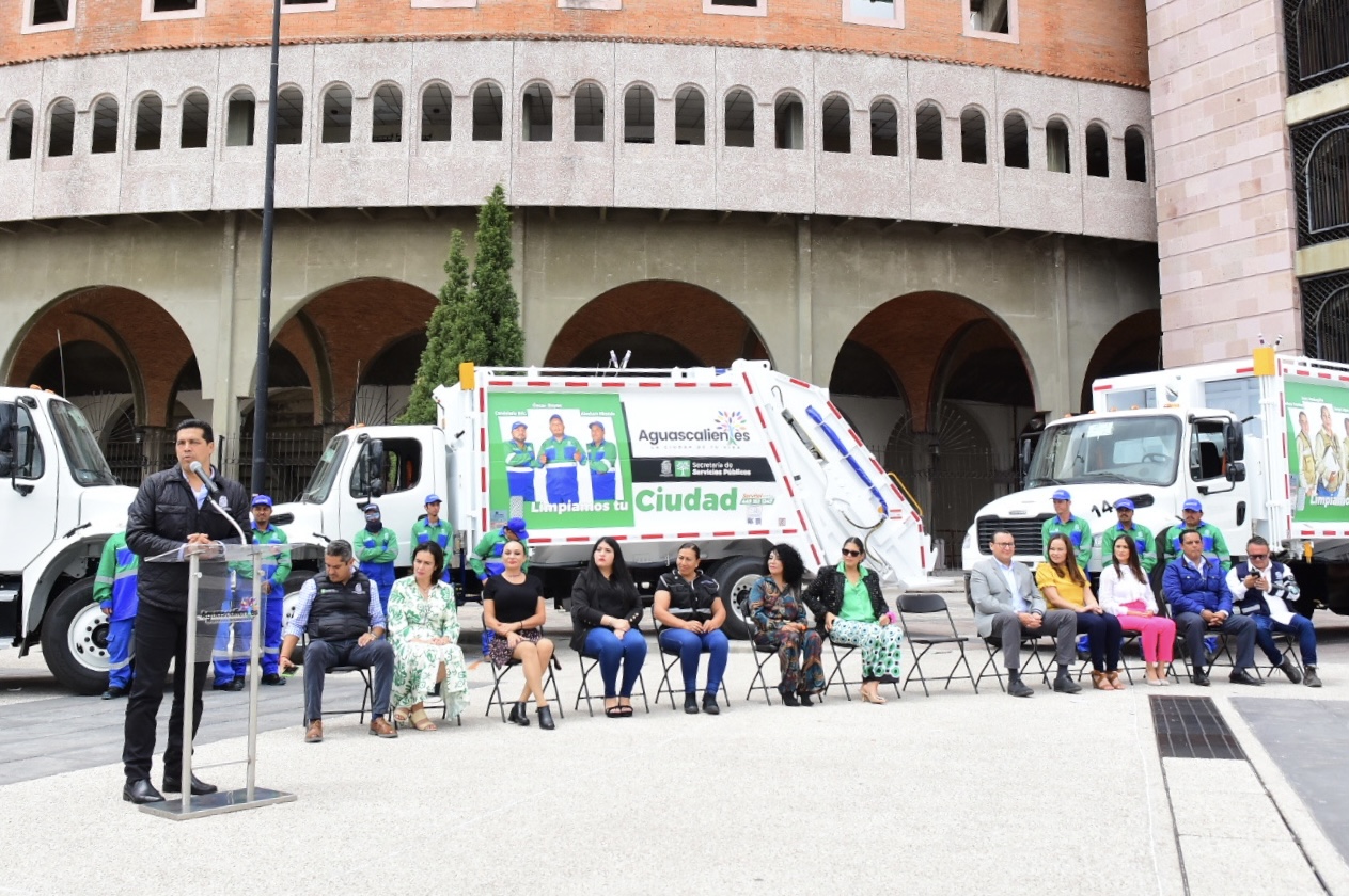 Dentro de los trabajos que el presidente municipal, Leonardo Montañez lleva a cabo para que el municipio de Aguascalientes cuente con un servicio de recolección más eficiente y se siga destacando como una de las ciudades más limpias de Latinoamérica, incorporó 22 nuevos camiones compactadores de residuos sólidos, realizando el día de hoy la entrega simbólica de 10 de estos a la Dirección de Limpia y Aseo Público de la Secretaría de Servicios Públicos (SSP).