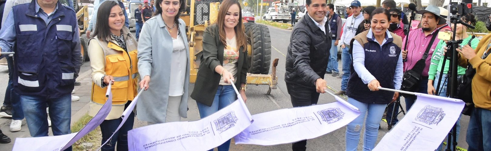 El presidente municipal, Leonardo Montañez dio el banderazo de arranque a los trabajos de construcción de concreto hidráulico y sobrecarpeta asfáltica en avenida de los Maestros, (antes Agostaderito), en ambas calzadas, entre la calle Prof. J. Guadalupe Peralta y Siglo XXI (Tercer Anillo de Circunvalación).
