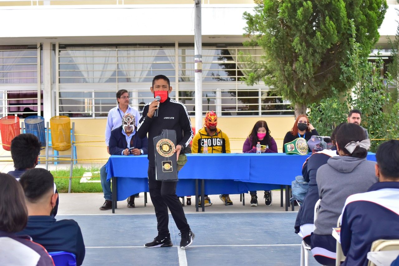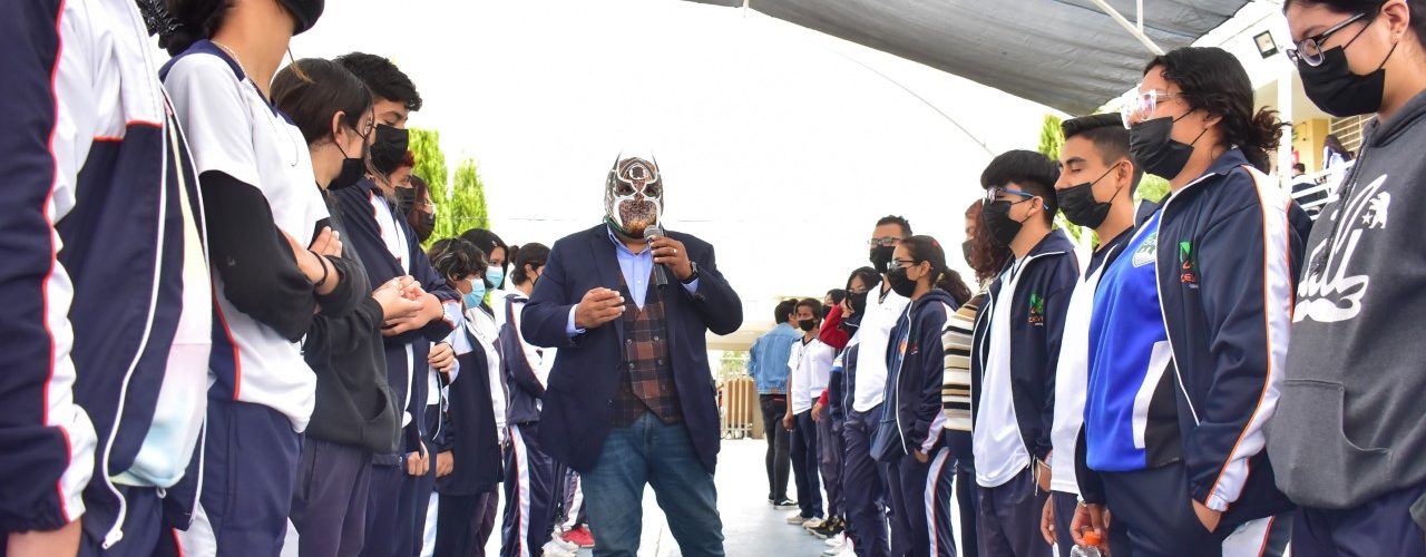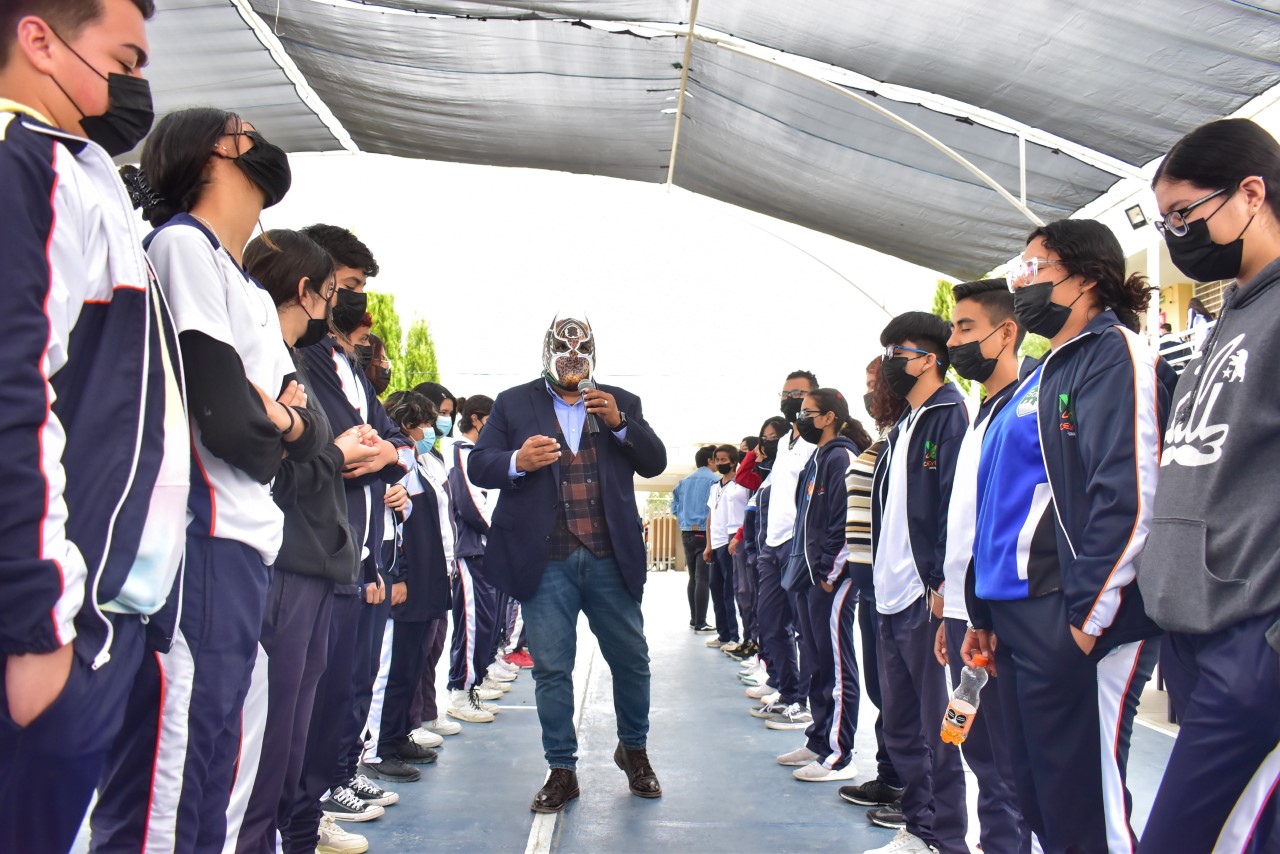 El luchador «La Gran Amenaza» realizó con los jóvenes una serie de dinámicas que les permitieron llegar a la reflexión de cómo usan su tiempo, cuánta energía dedican a problemas y las consecuencias de ser indiferentes ante lo que sucede en su entorno.