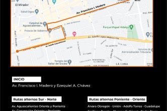- Avenida Aguascalientes Oriente y Poniente (ambos sentidos)
