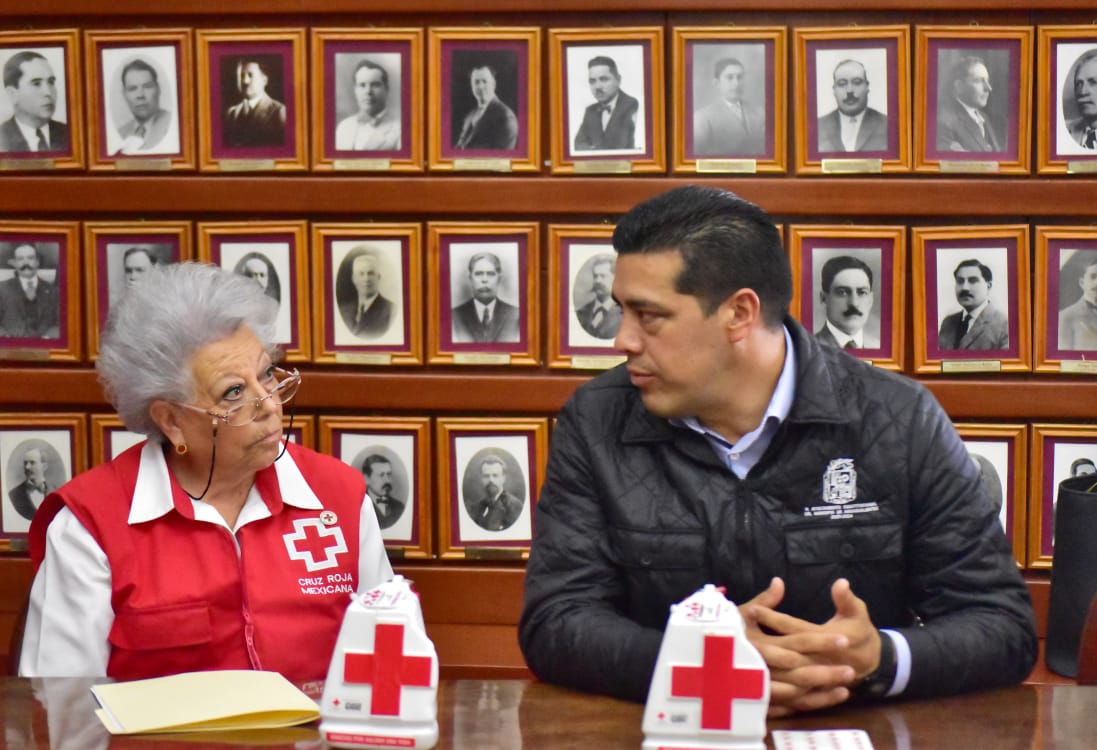 Al sostener un encuentro con la delegada estatal de la Cruz Roja, Leticia Ponce Guzmán, el presidente municipal escuchó sobre la implementación de nuevas modalidades para la atención de situaciones de emergencias en el Centro Histórico de la capital.