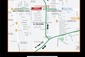 Finalmente, se permitirá el tráfico local en las colonias y fraccionamientos: México, Ojo de Agua, Jardines del Sol, Vistas del Sol, La Cruz, Vistas del Sol, Casa Blanca, Jardines de Casa Blanca, Pirámides, Residencial del Parque y Misión de Santa Fe.